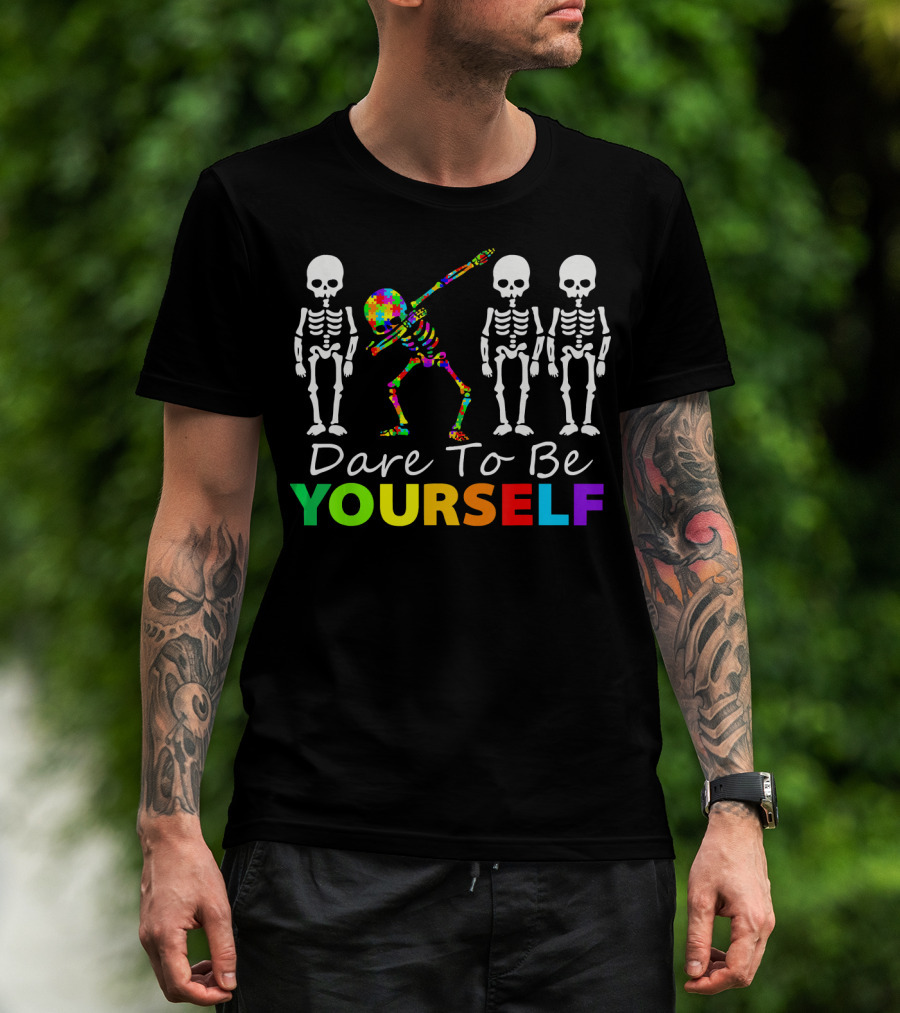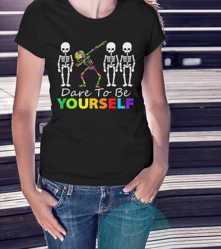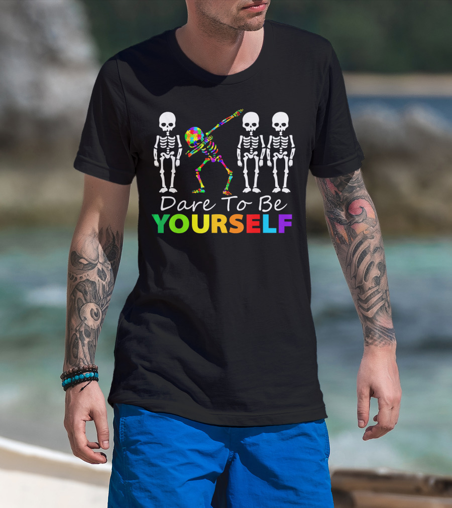 Dare To Be Yourself Colorful Skeleton Dabbing With White Skeletons T-Shirt