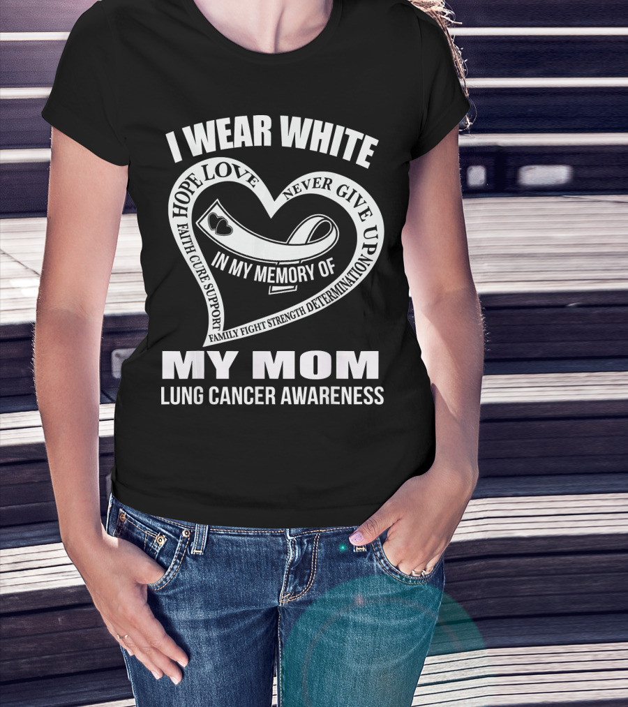 I WEAR WHITE LOVE SUPPORT STRENGTH IN MY MEMORY OF MY MOM LUNG CANCER AWARENESS T-Shirt