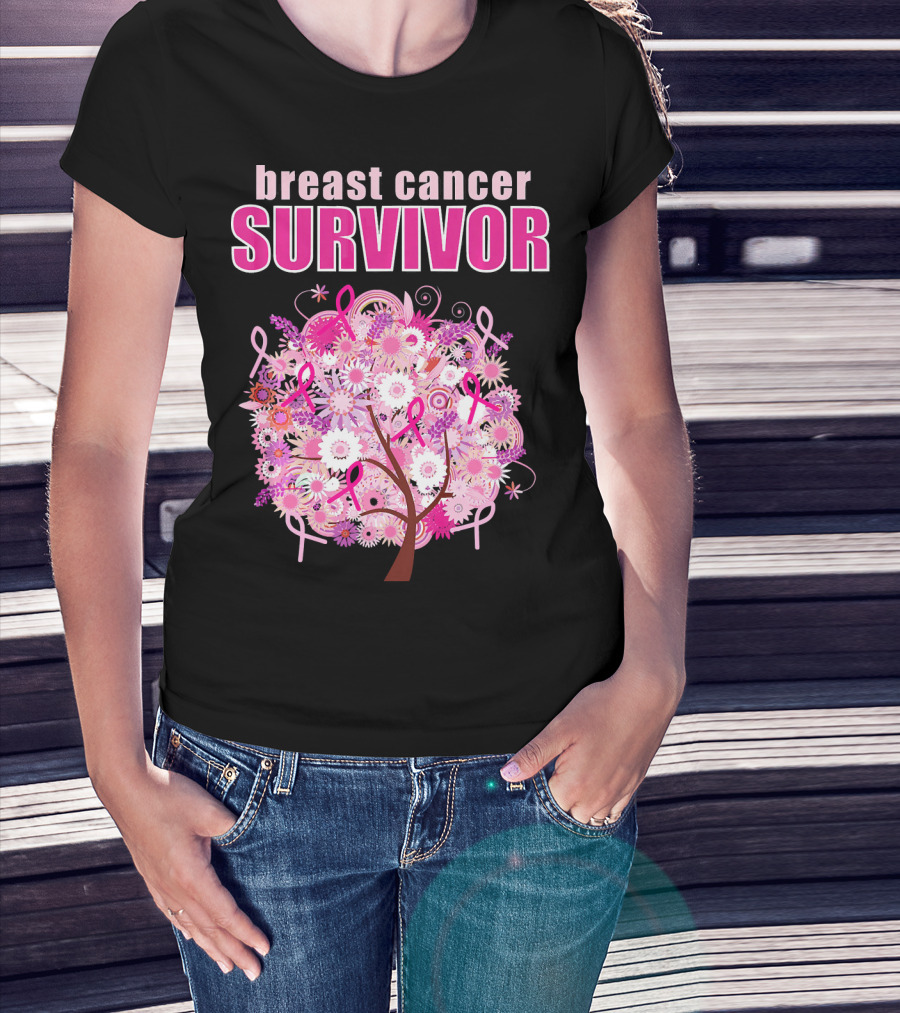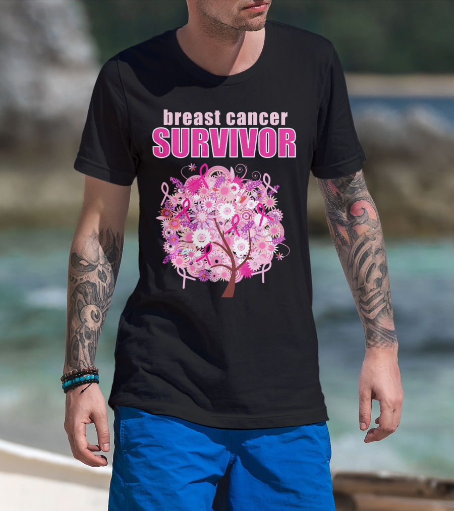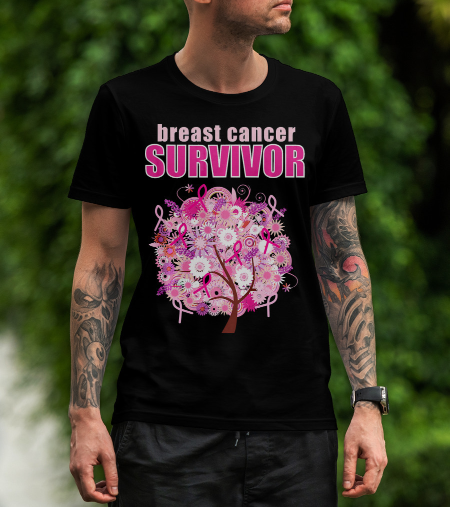 Breast Cancer Survivor Floral Pink Ribbon Tree T-Shirt