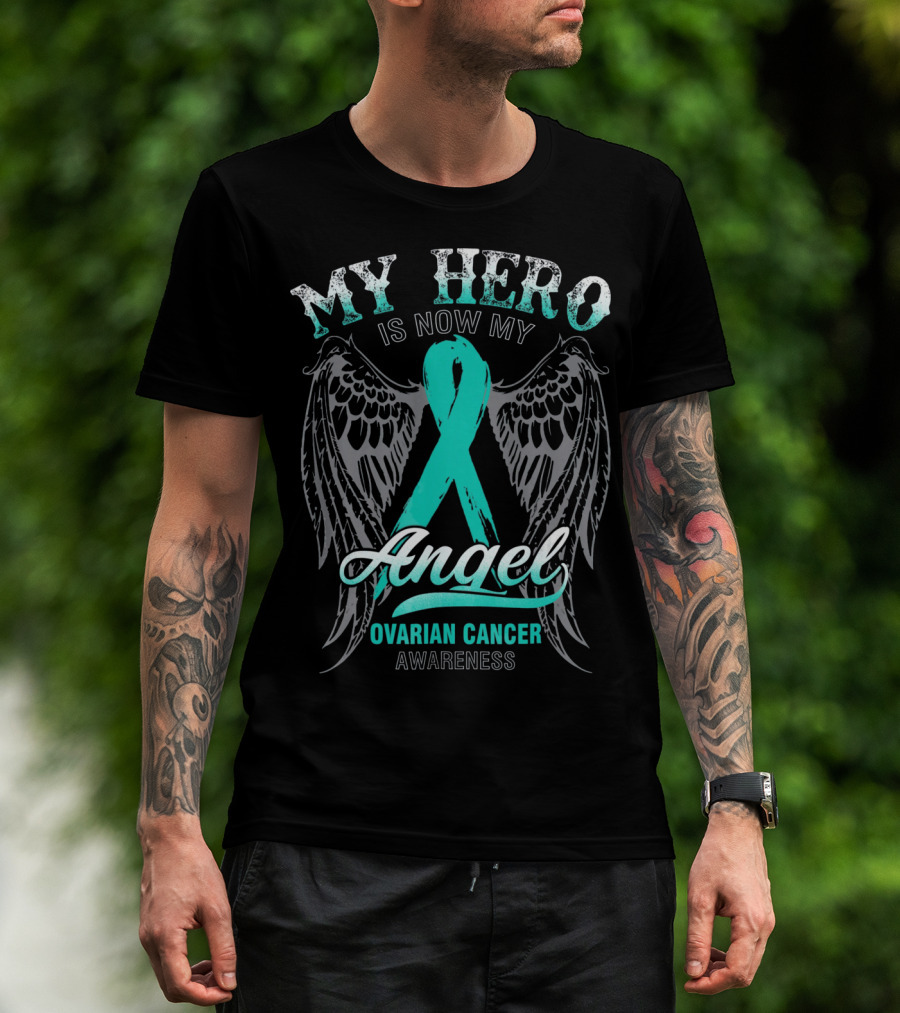 MY HERO IS NOW MY ANGEL OVARIAN CANCER AWARENESS T-Shirt