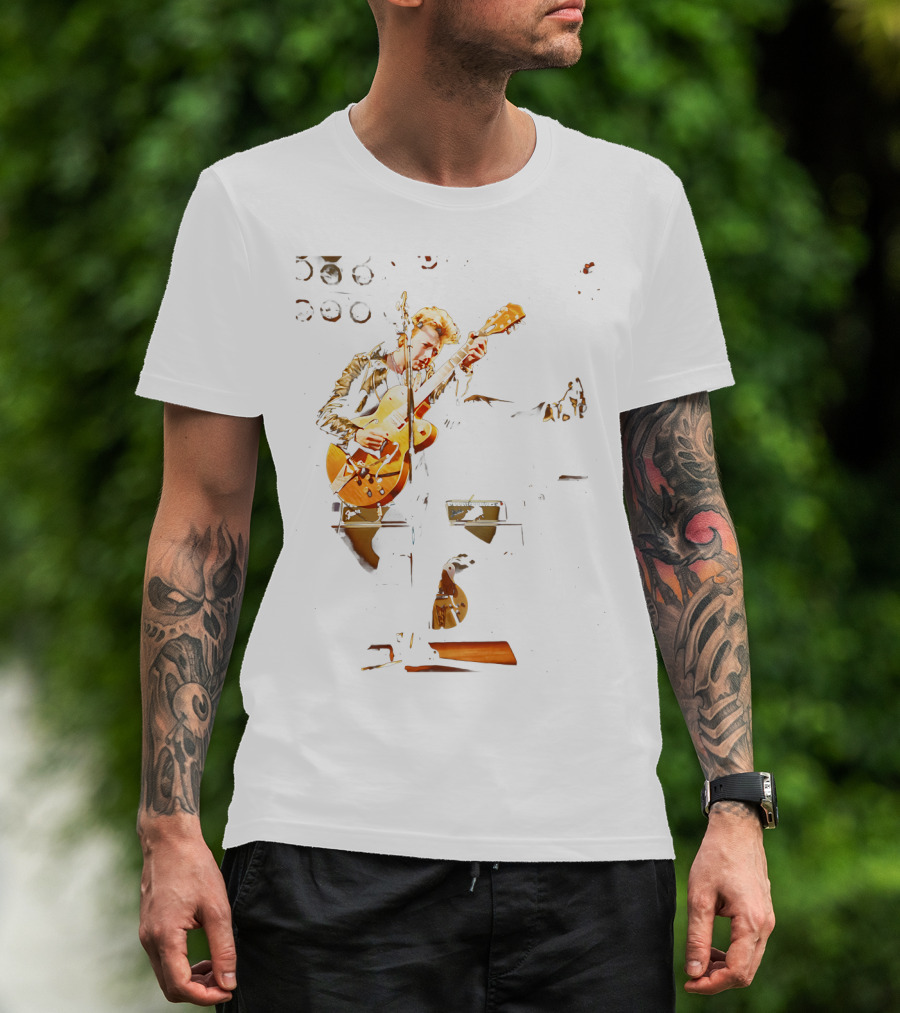 The Straycats Rockabilly Guitarist in Leather Jacket T-shirt is designed for everyday wear and a consistent fit. Fabric is pre-shrunk ring-spun cotton with durable stitching. See the size chart below for exact measurements.