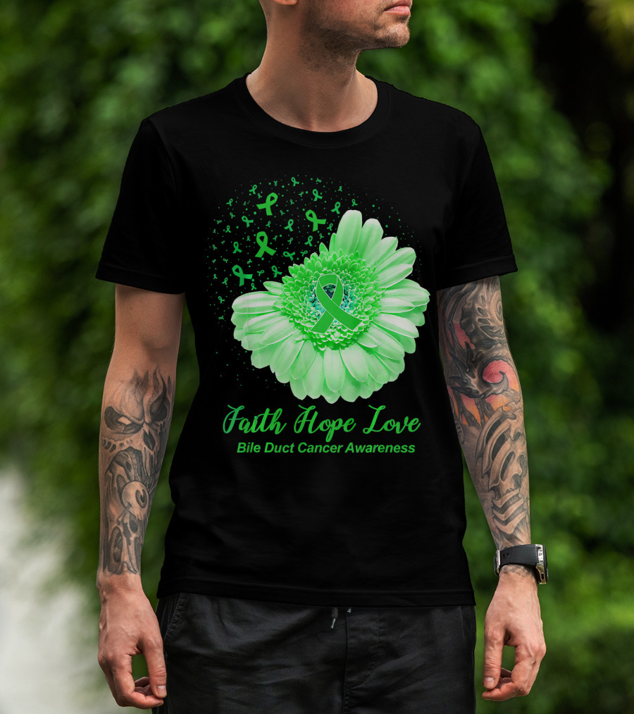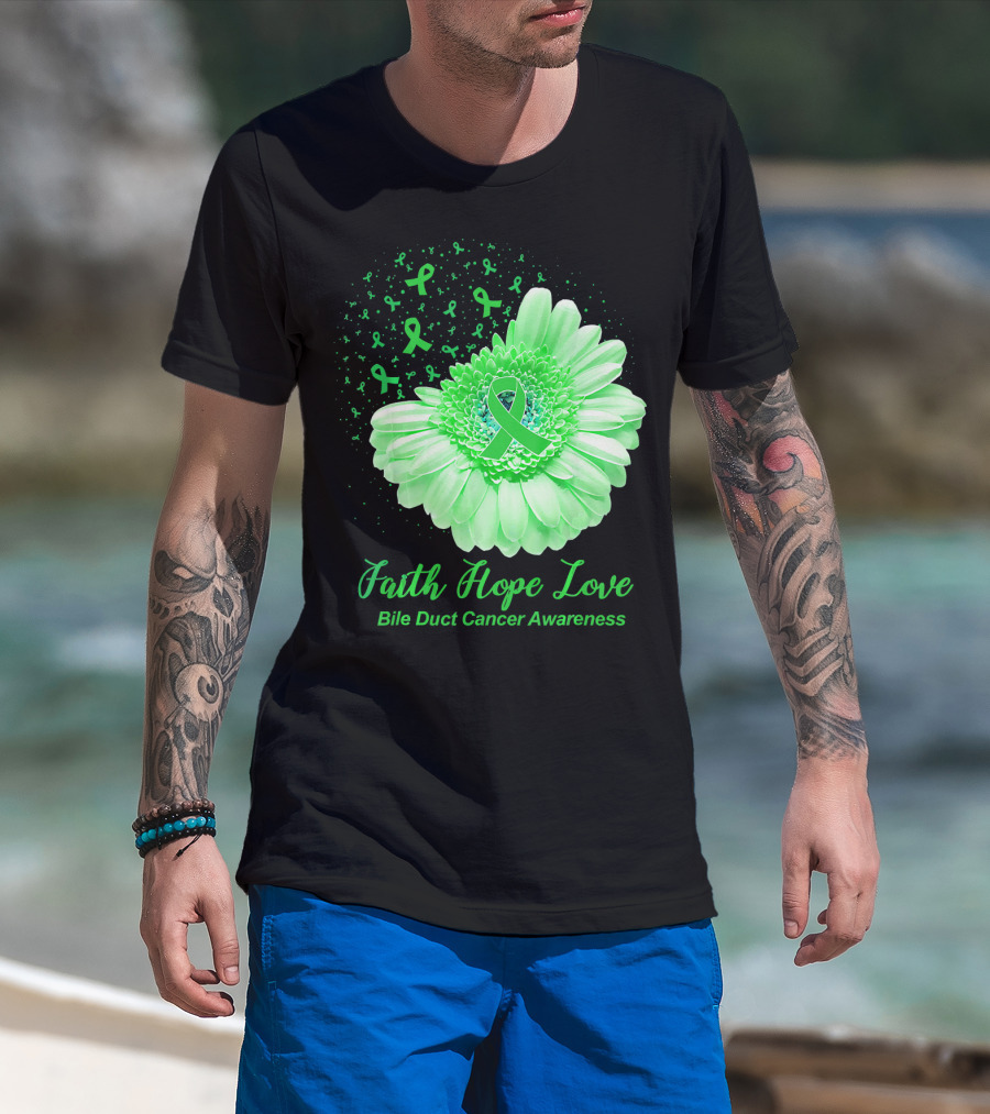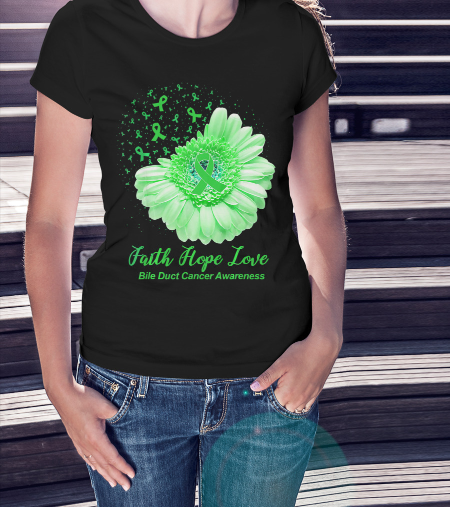 Faith Hope Love Bile Duct Cancer Awareness Flower T-Shirt