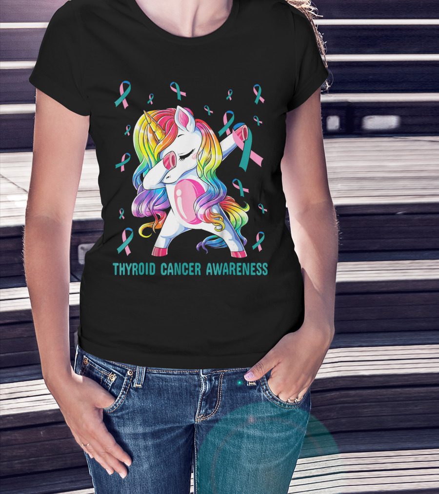 Dabbing Unicorn Rainbow Thyroid Cancer Awareness T-Shirt