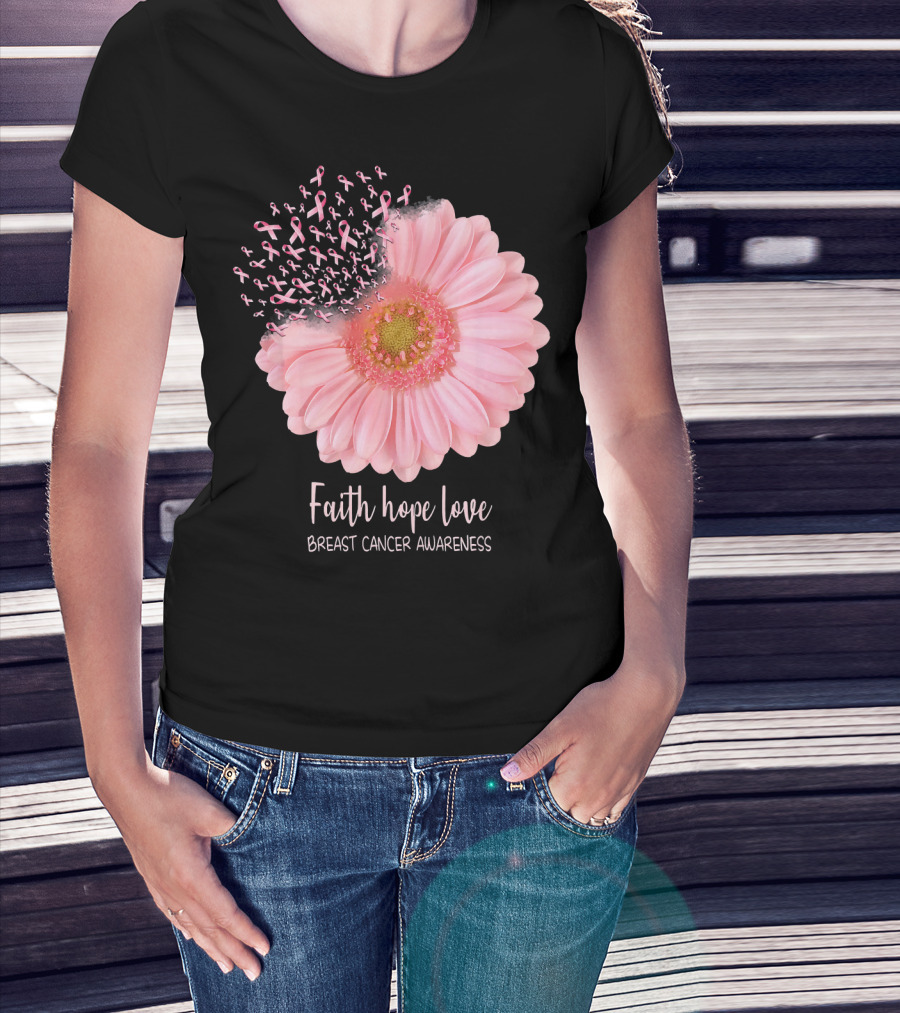 Faith Hope Love Breast Cancer Awareness Pink Sunflower T-Shirt