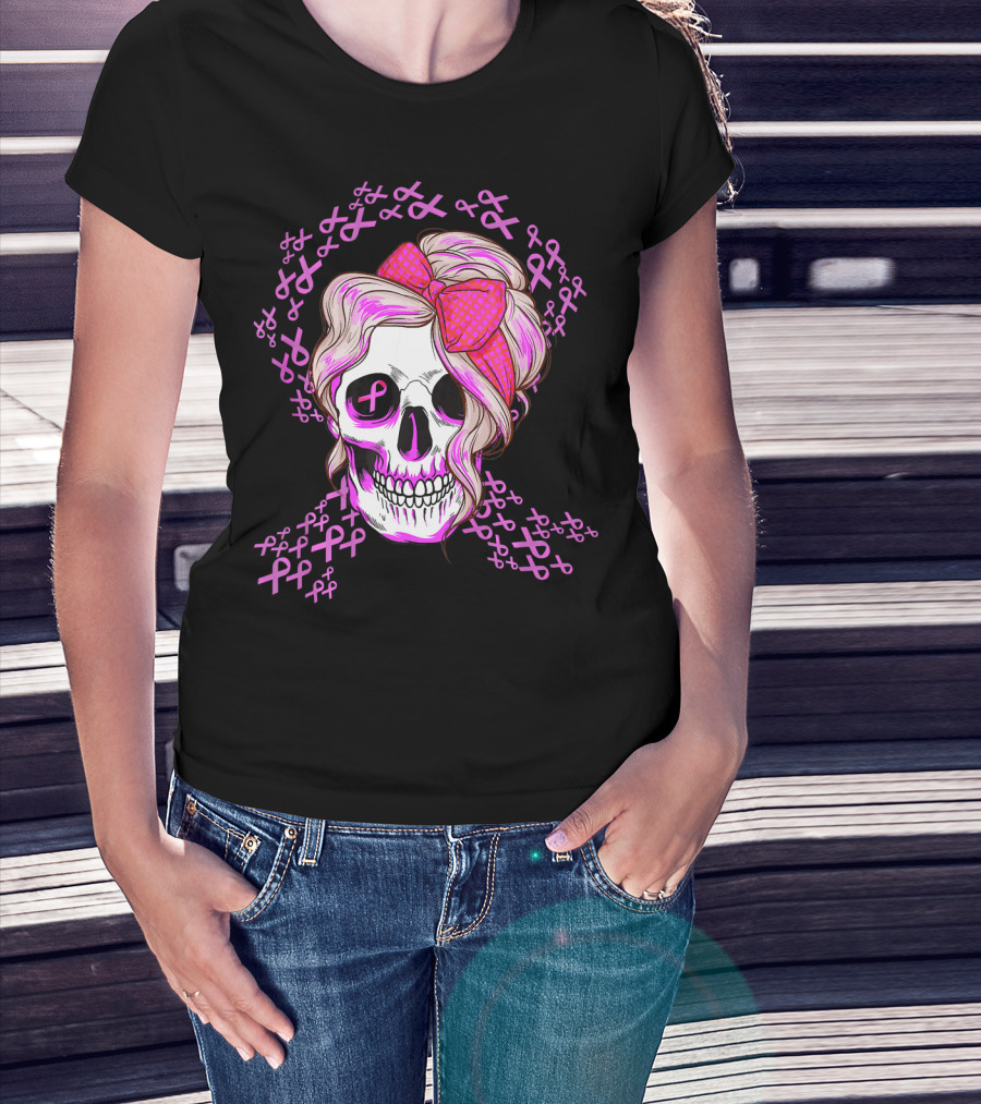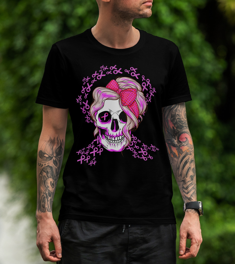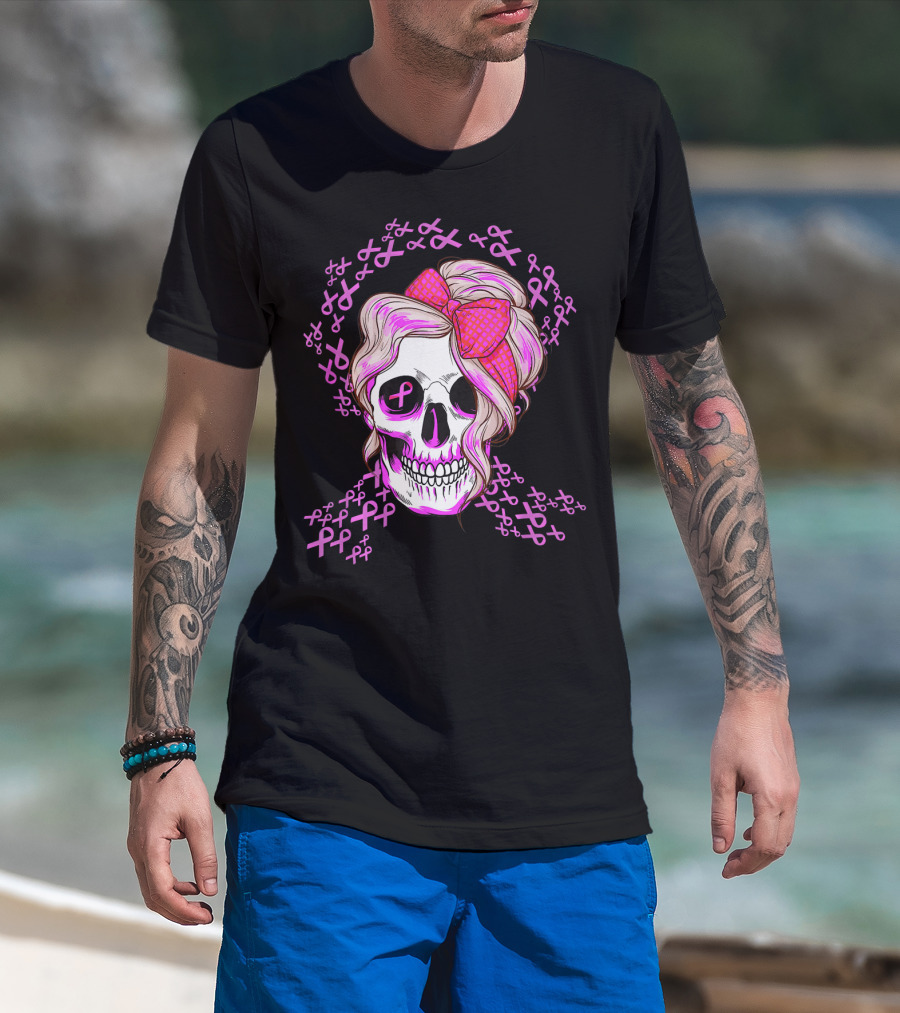 Sugar Skull Pink Ribbon Breast Cancer Awareness T-Shirt