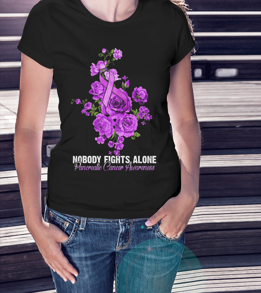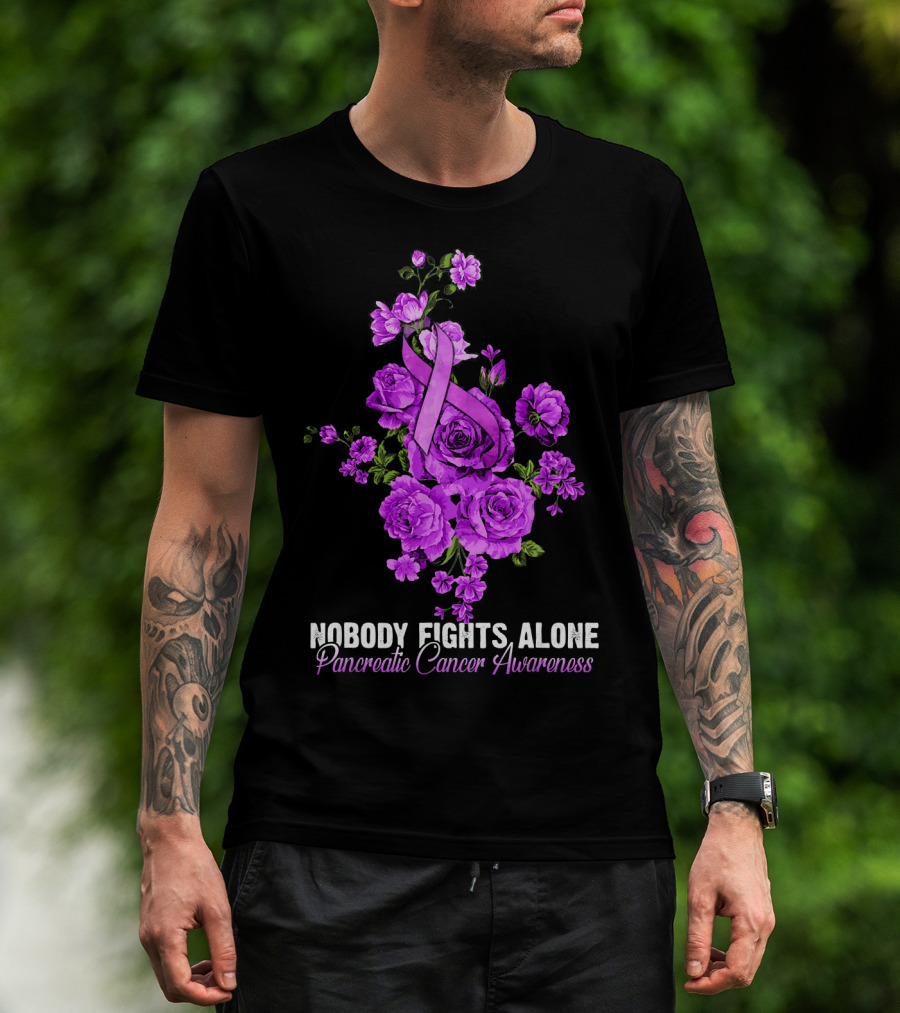 Nobody Fights Alone Pancreatic Cancer Awareness Flower T-Shirt