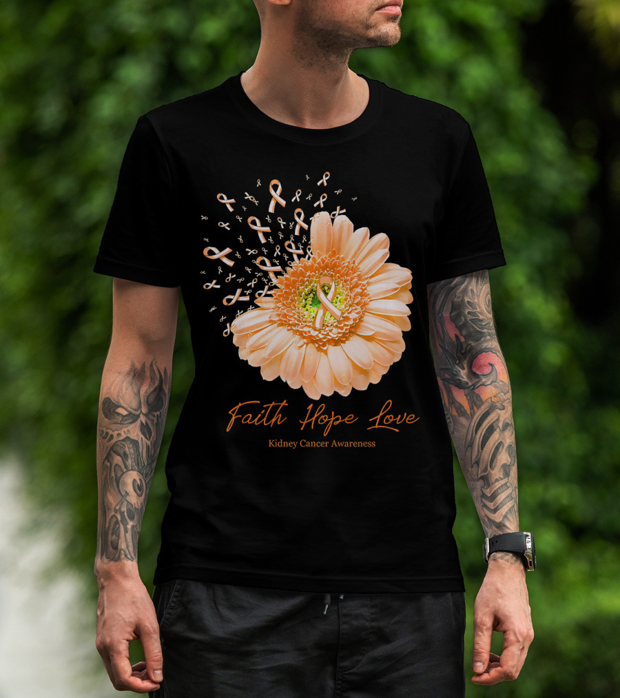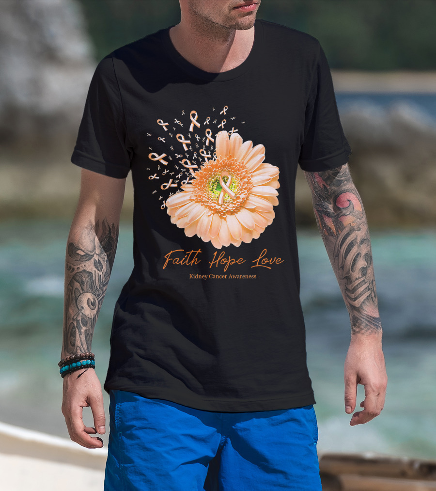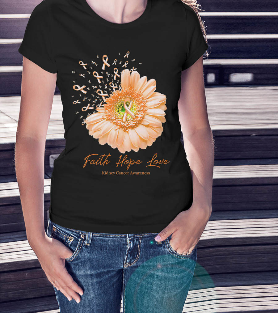 Faith Hope Love Kidney Cancer Awareness Orange Ribbon Flower T-Shirt