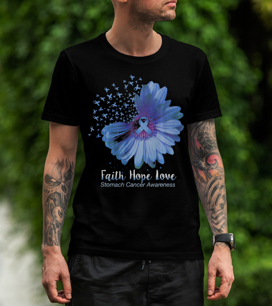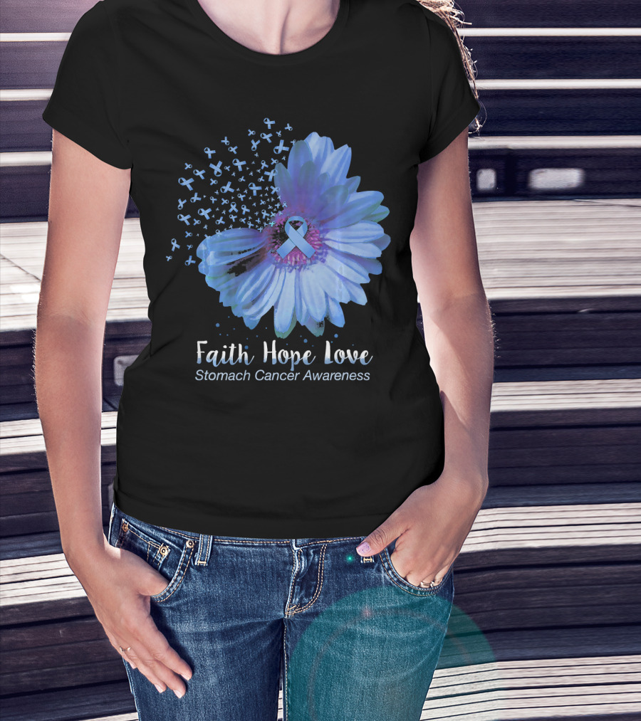 Faith Hope Love Stomach Cancer Awareness Blue Flower T-Shirt