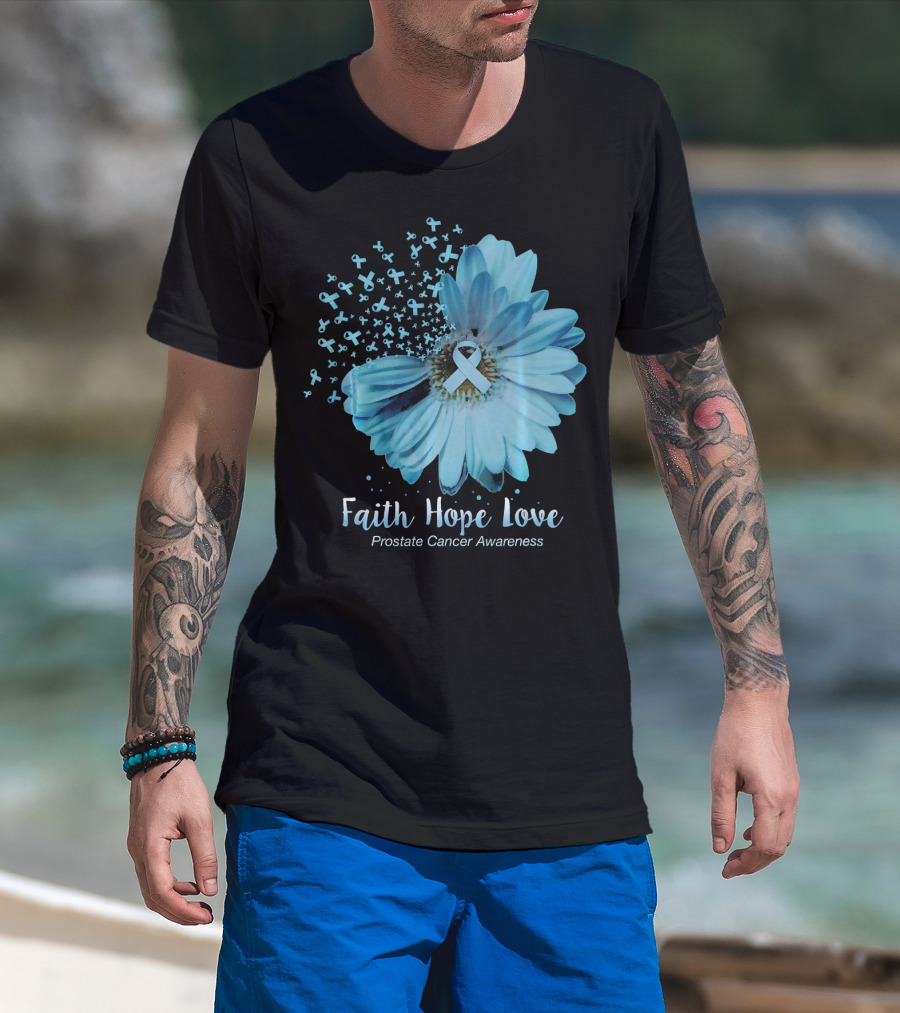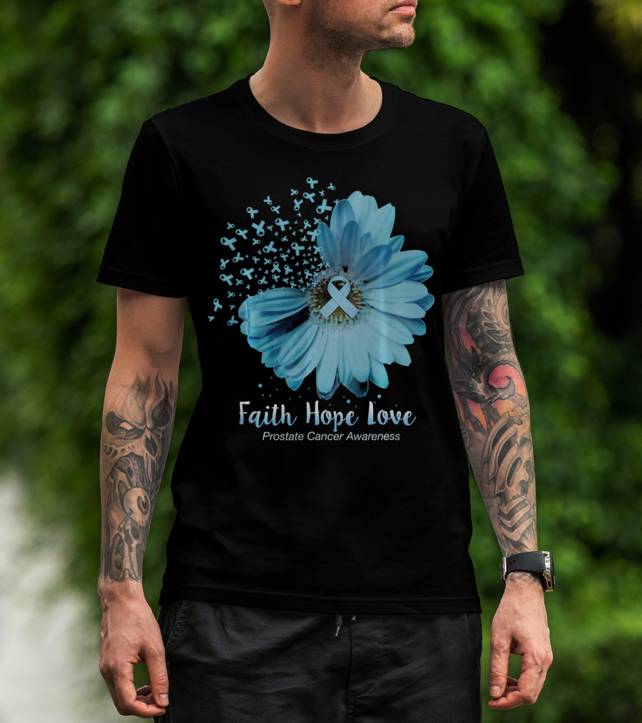 Faith Hope Love Prostate Cancer Awareness Blue Ribbon Flower T-Shirt