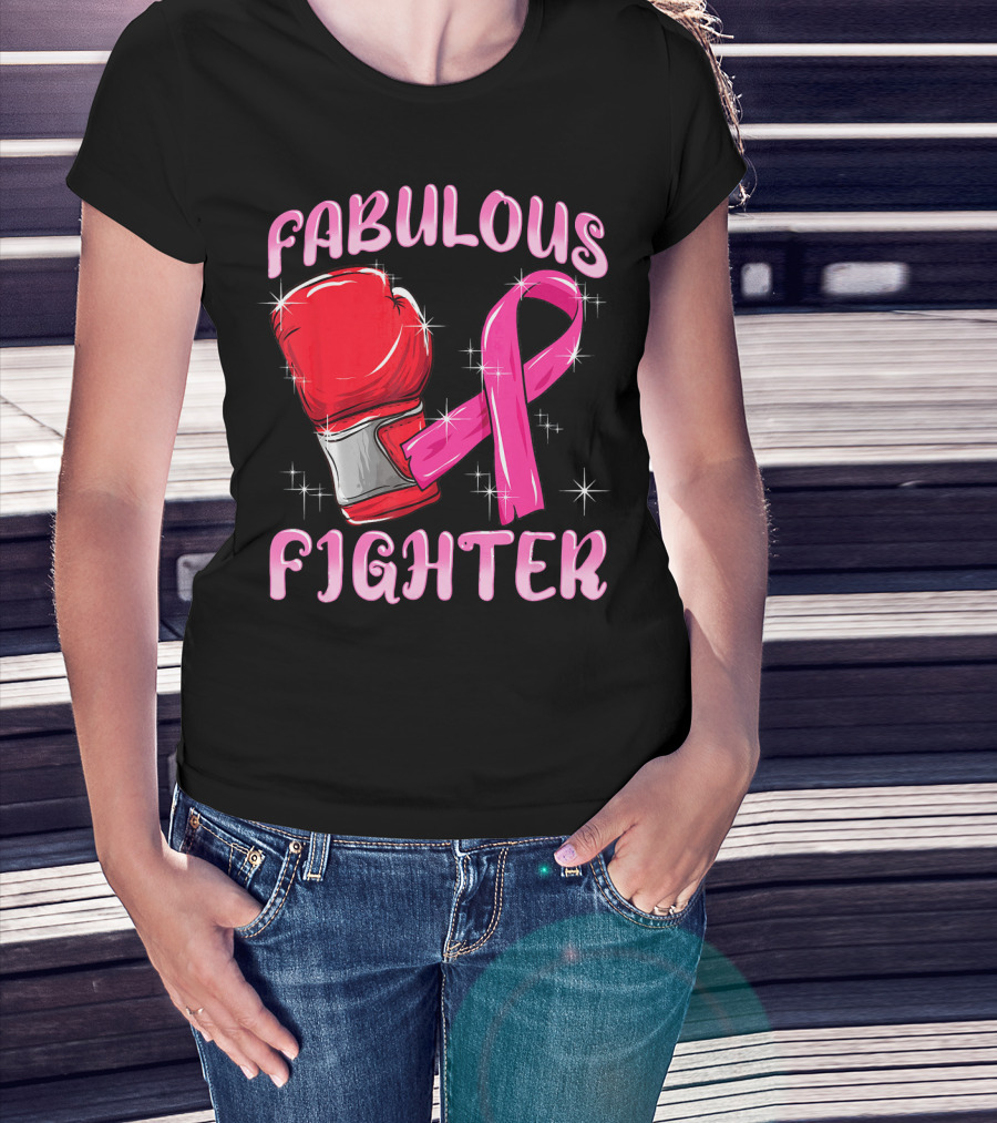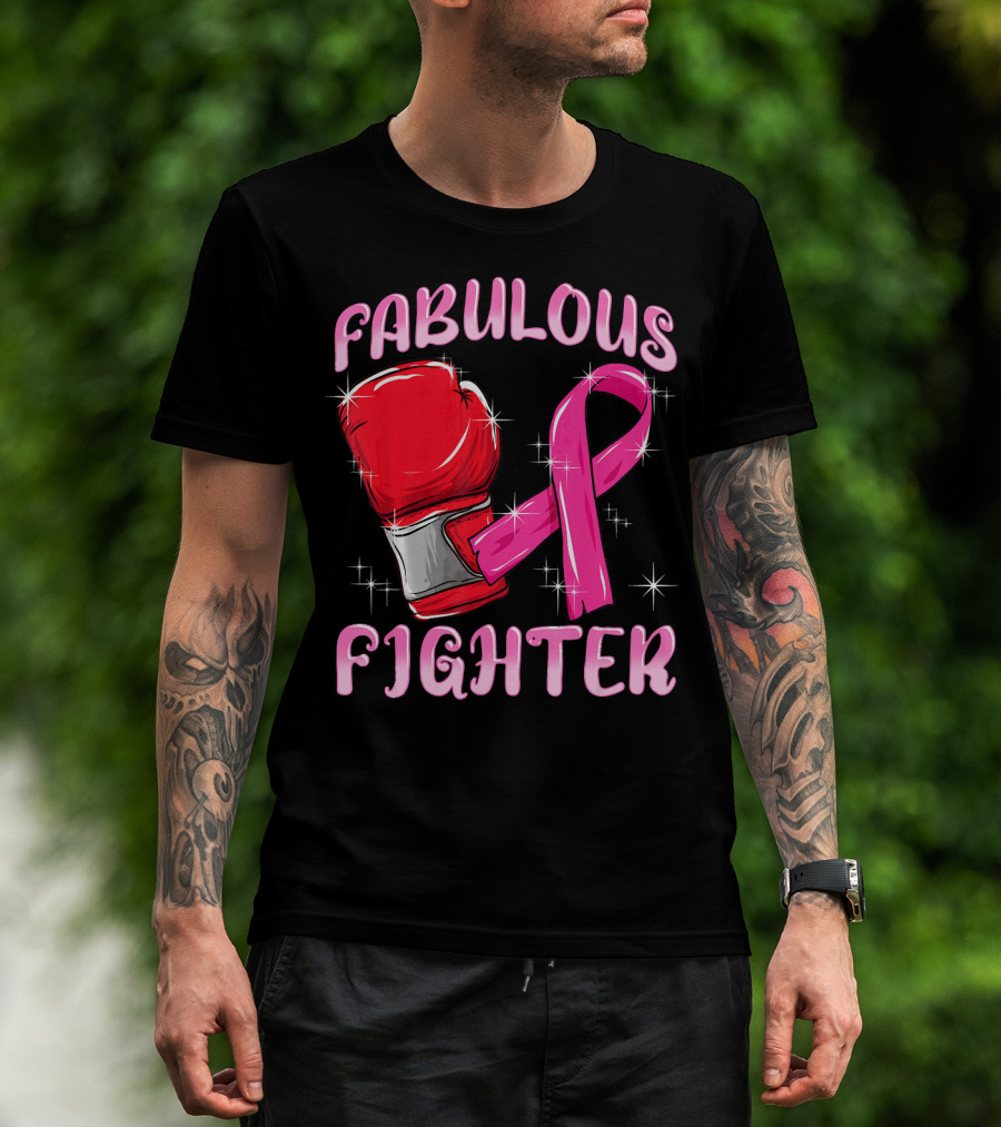 Fabulous Fighter Red Boxing Glove Pink Ribbon Breast Cancer Awareness T-Shirt