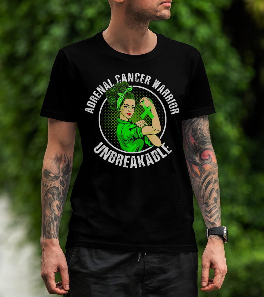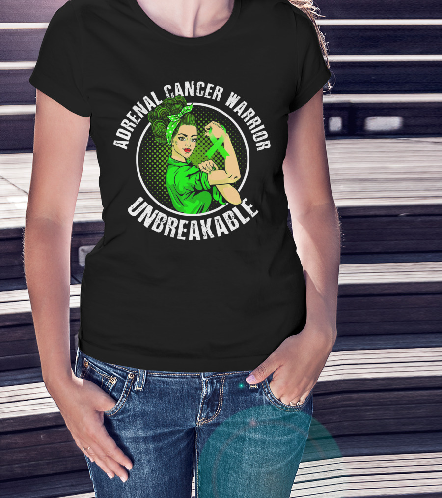 Adrenal Cancer Warrior Unbreakable Rosie The Riveter Green T-Shirt