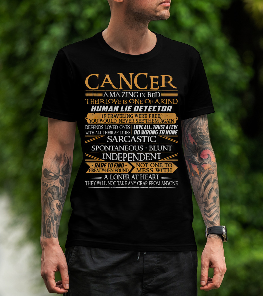 Cancer Amazing In Bed Sarcastic Independent Human Lie Detector Spontaneous Blunt Loner T-Shirt