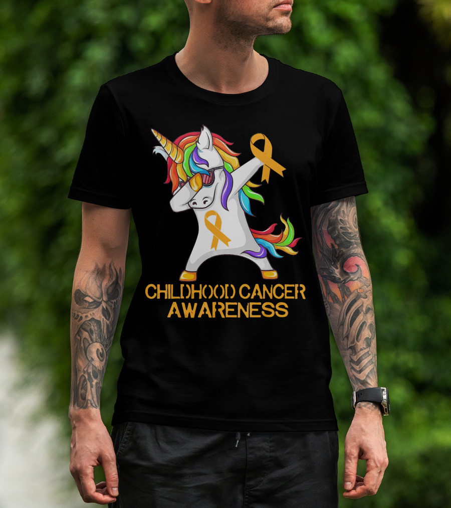Childhood Cancer Awareness Dabbing Unicorn With Yellow T-Shirt