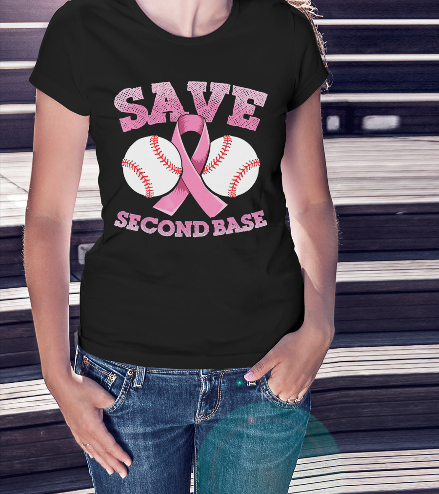 Save Second Base Breast Cancer Awareness Baseball T-Shirt