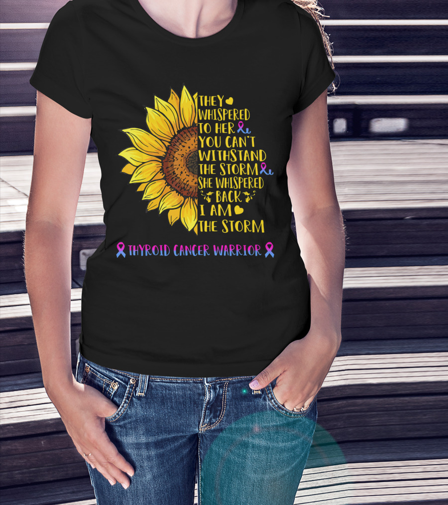 They Whispered To Her You Can't Withstand The Storm She Whispered Back I Am The Storm Thyroid Cancer Warrior T-Shirt