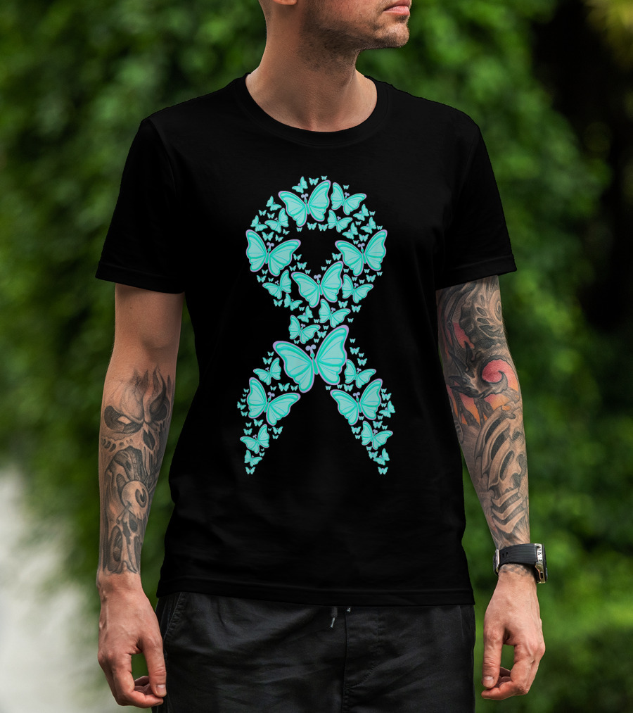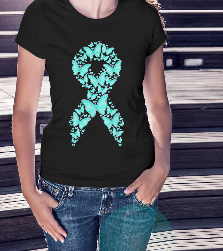Ovarian Cancer Awareness Butterfly Ribbon Fighter T-Shirt