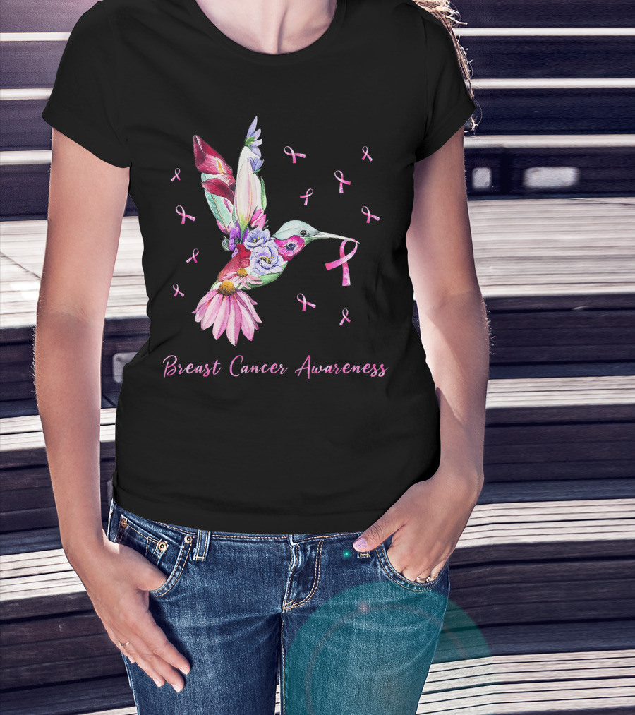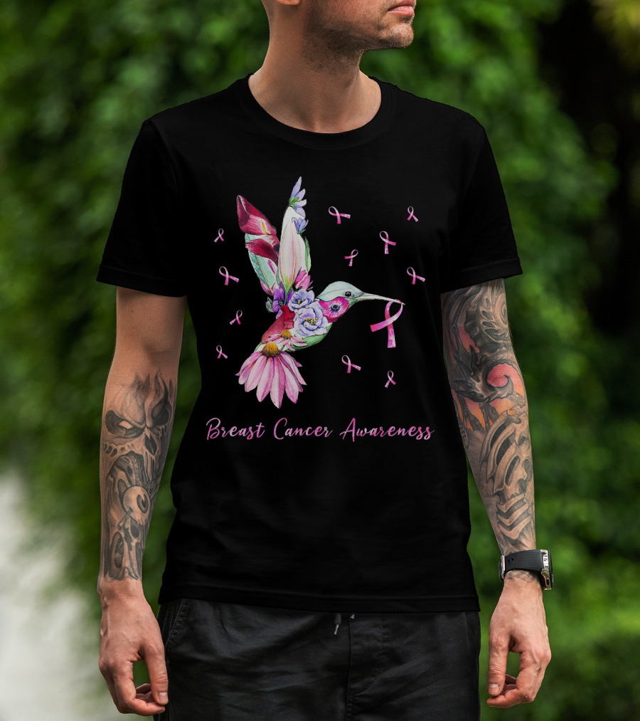 Breast Cancer Awareness Pink Ribbon Flower Hummingbird T-Shirt