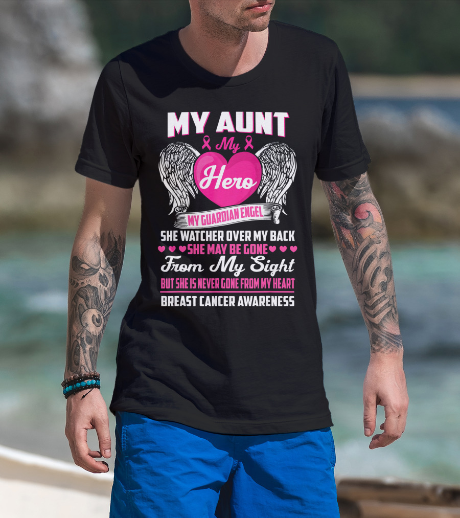 My Aunt My Hero My Guardian Angel She Watched Over My Back Breast Cancer Awareness T-Shirt