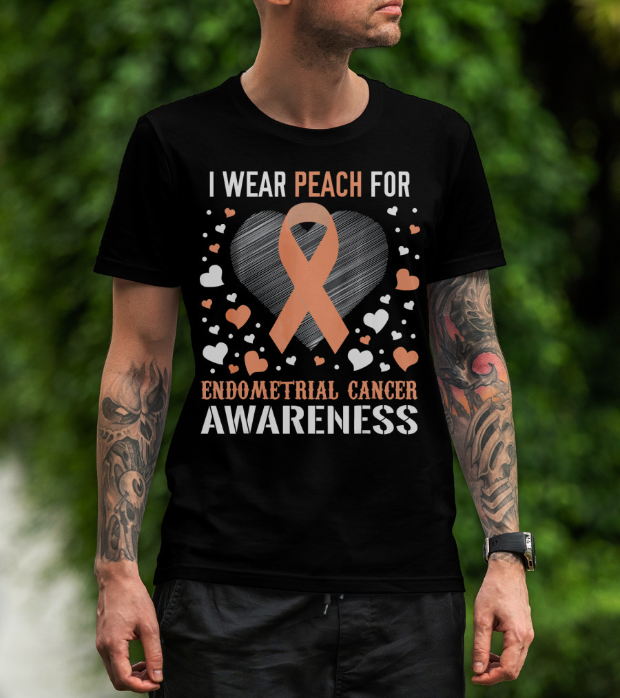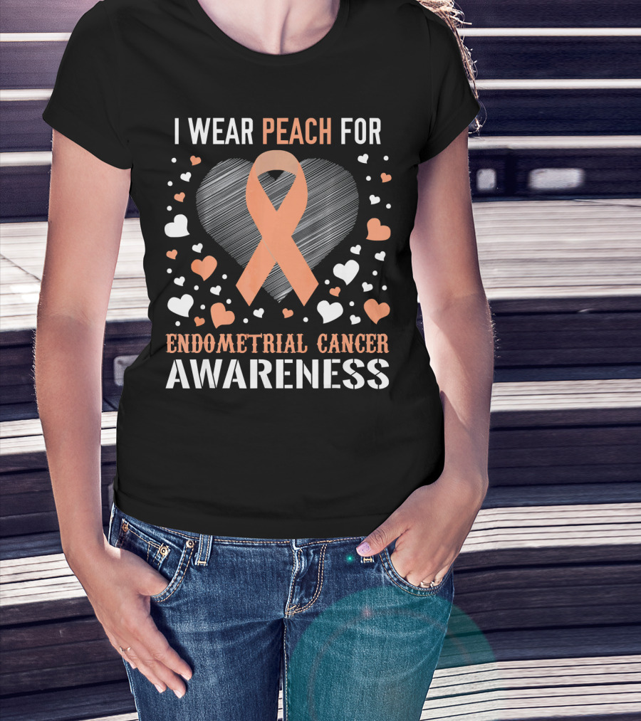 I Wear Peach For Endometrial Cancer Awareness Ribbon Heart T-Shirt