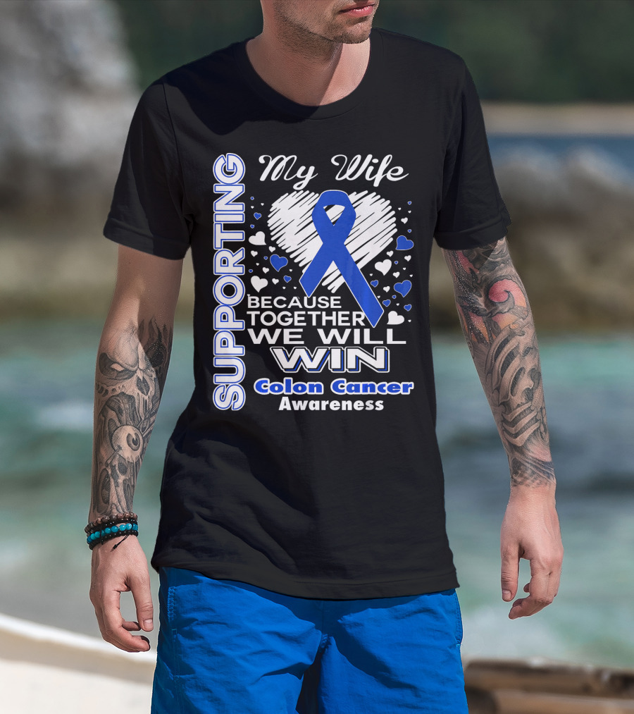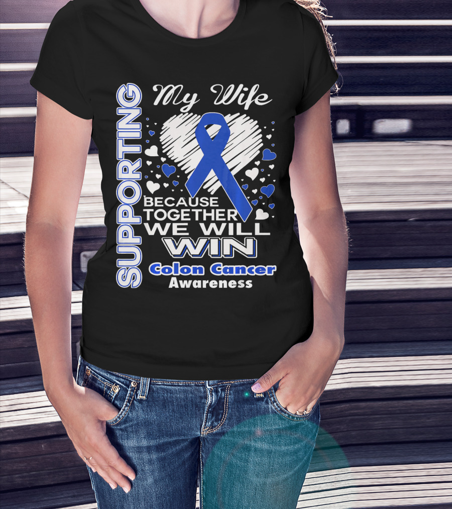 Supporting My Wife Because Together We Will Win Colon Cancer Awareness T-Shirt
