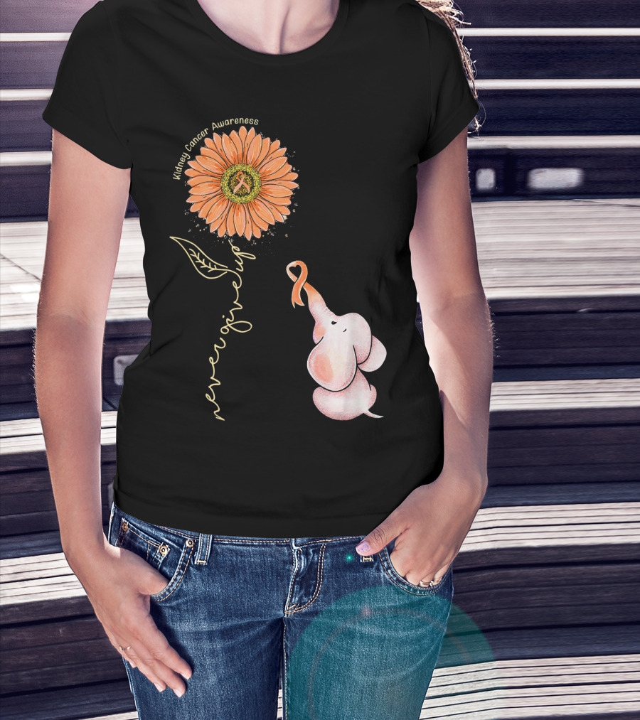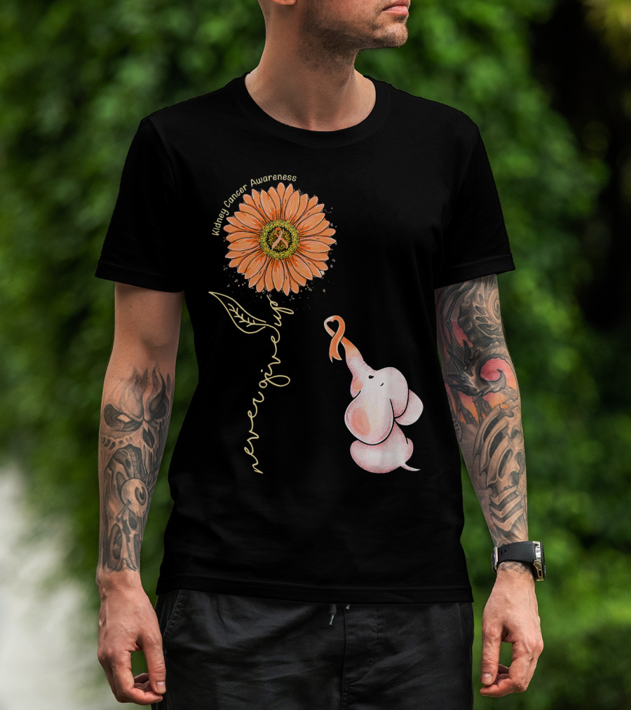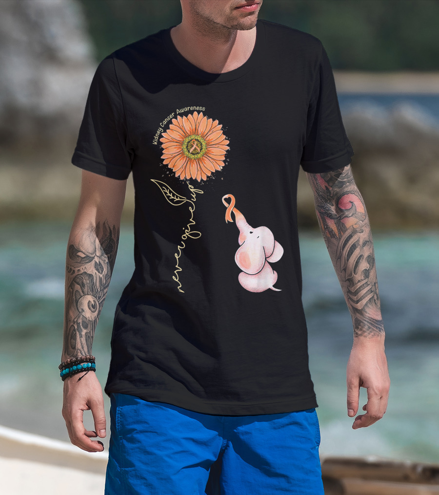 Kidney Cancer Awareness Sunflower Elephant Never Give Up T-Shirt