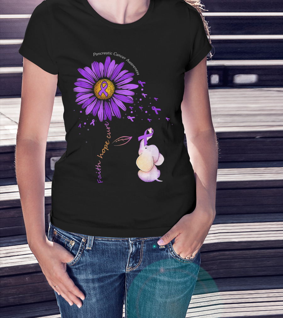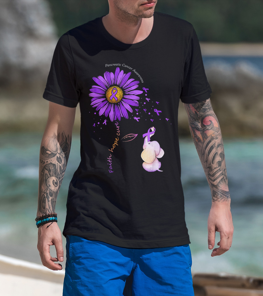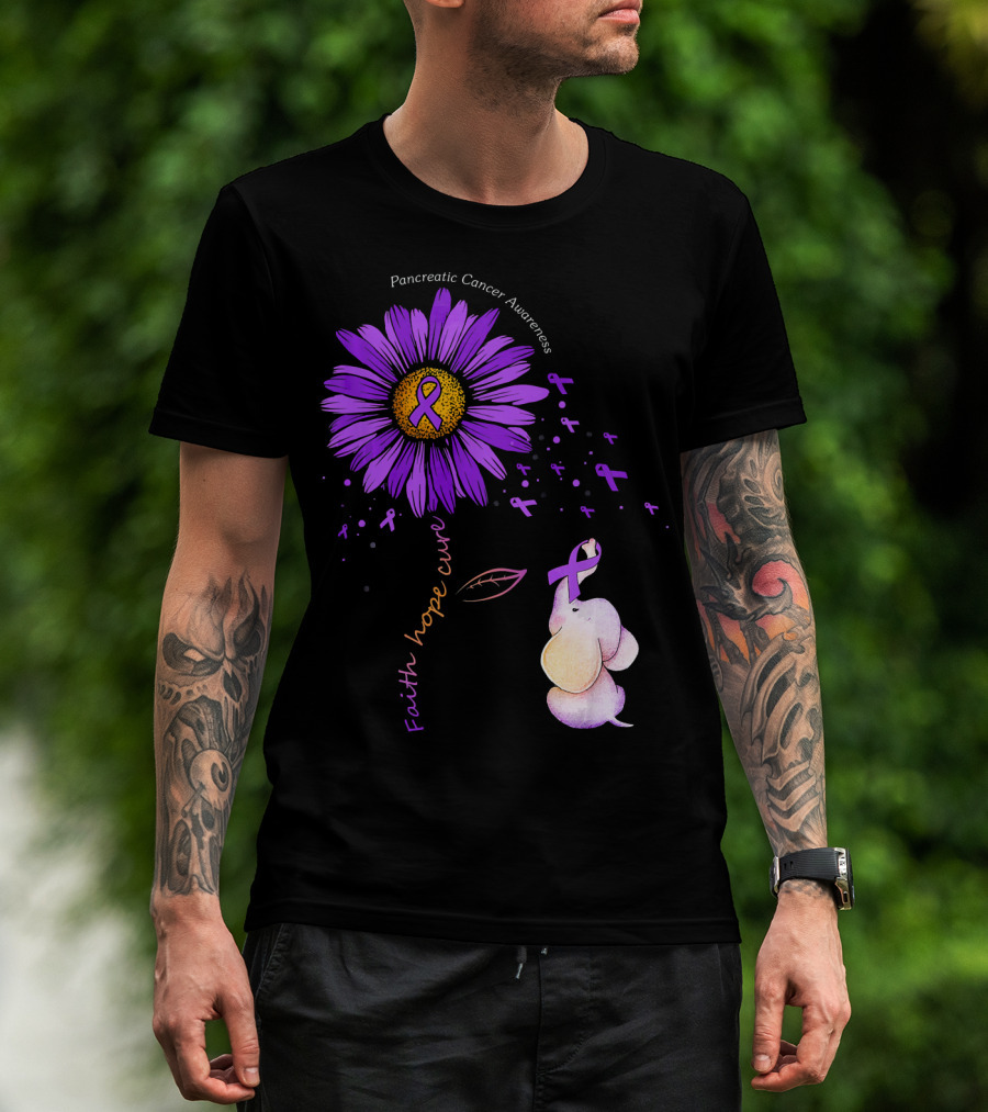 Faith Hope Cure Purple Daisy Flower Pancreatic Cancer Awareness T-Shirt