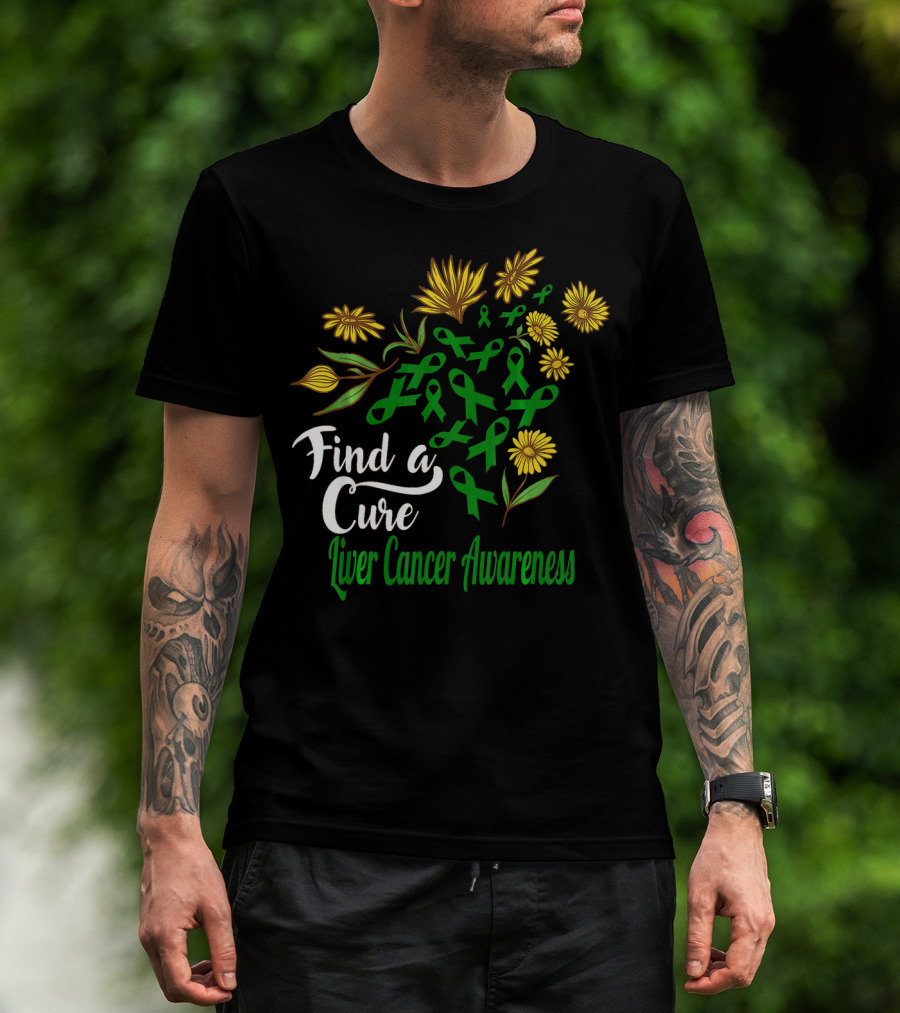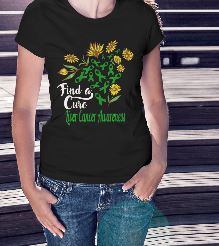 Find A Cure Liver Cancer Awareness Sunflower Ribbons T-Shirt