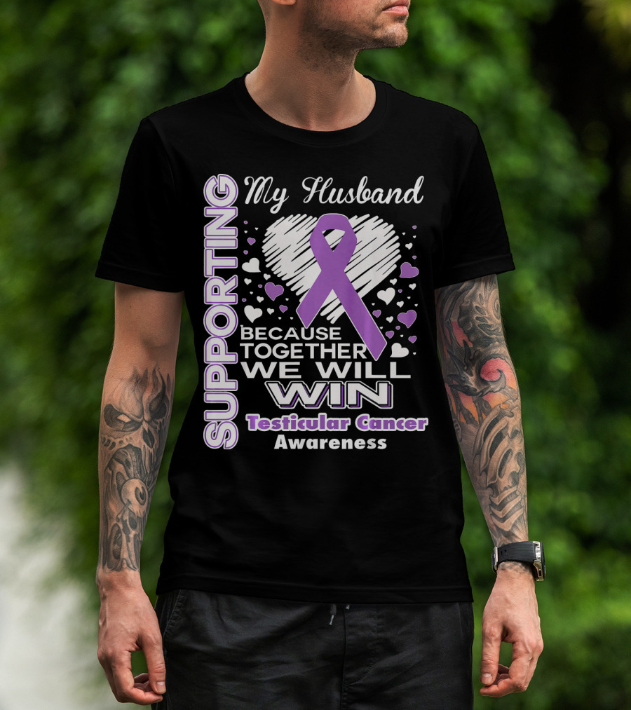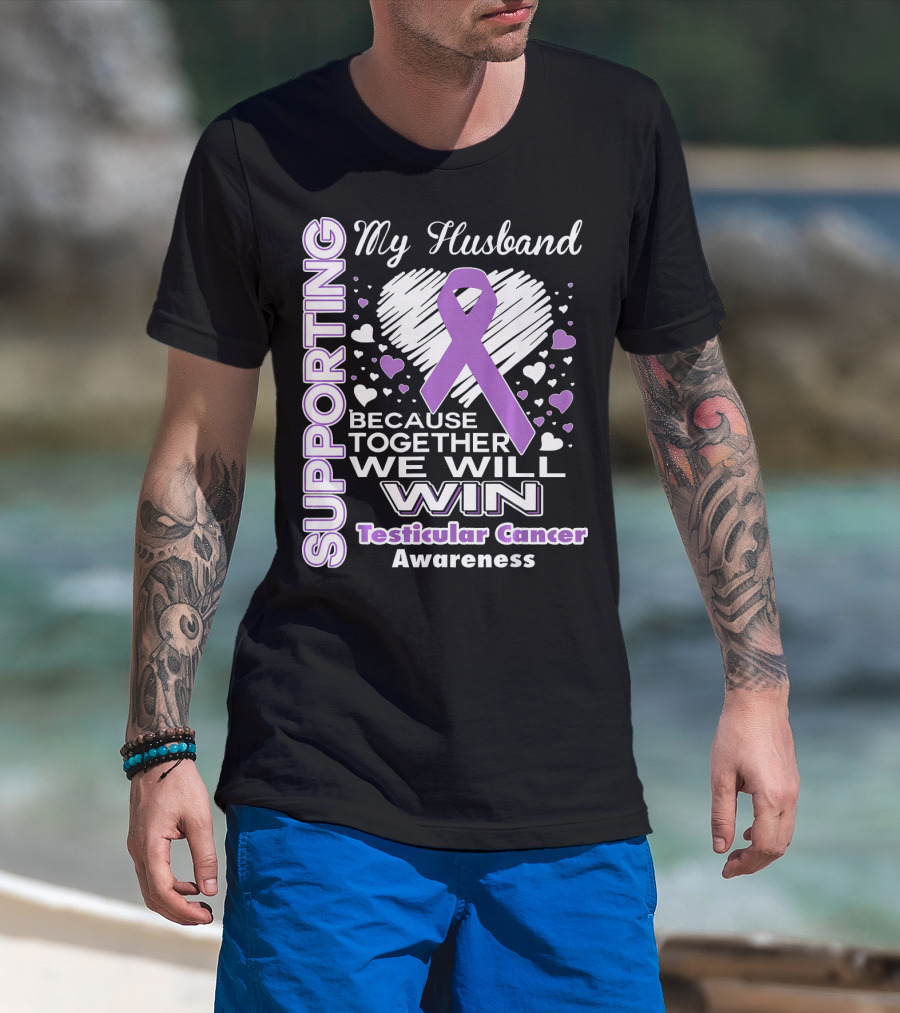Supporting My Husband Because Together We Will Win Testicular Cancer Awareness T-Shirt