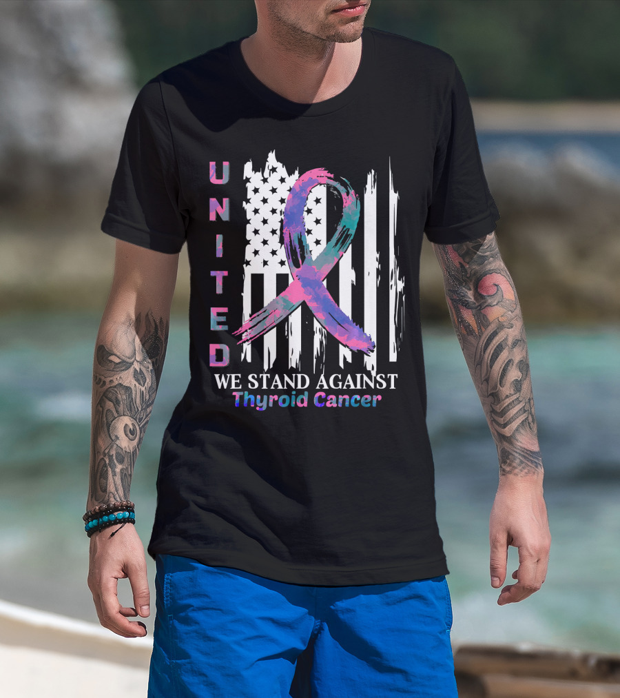 United American Flag With Thyroid Cancer Awareness T-Shirt