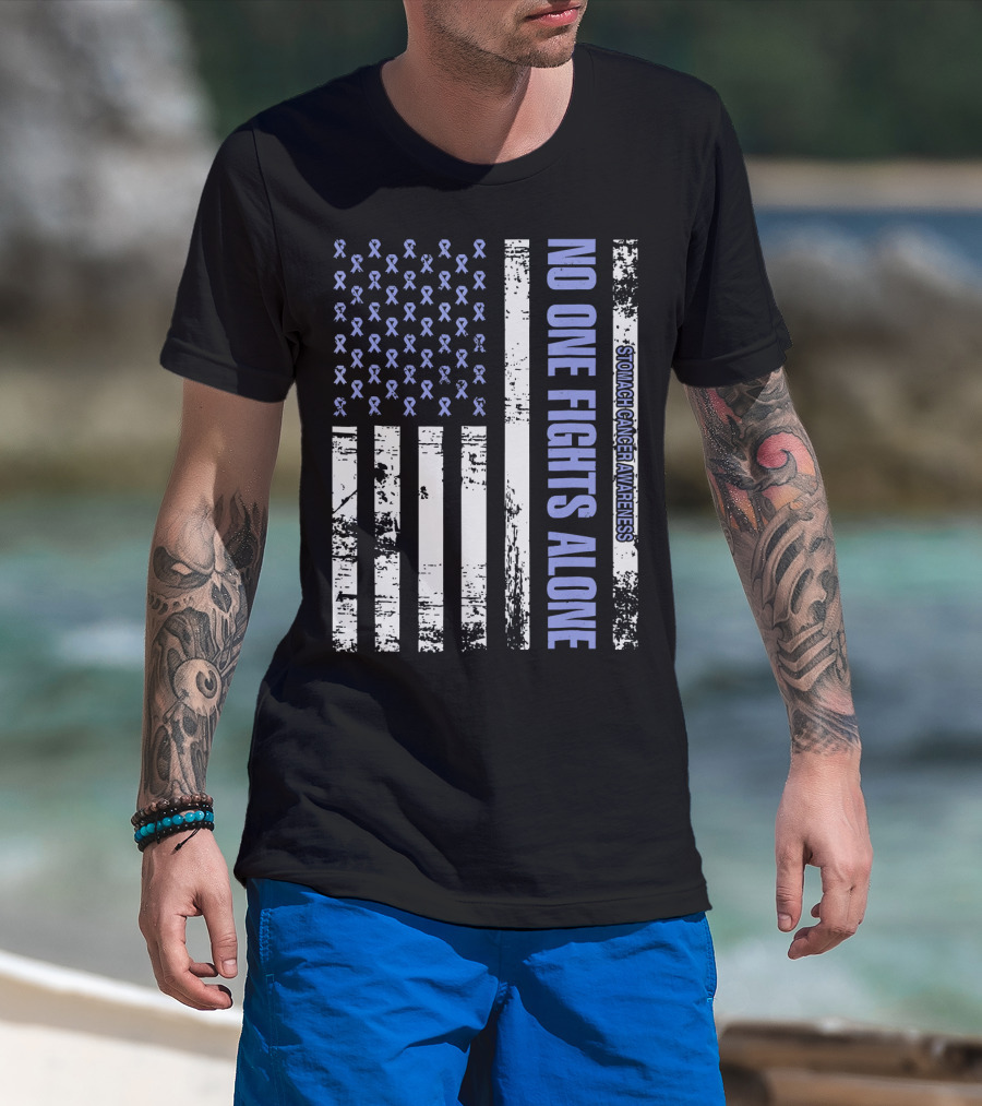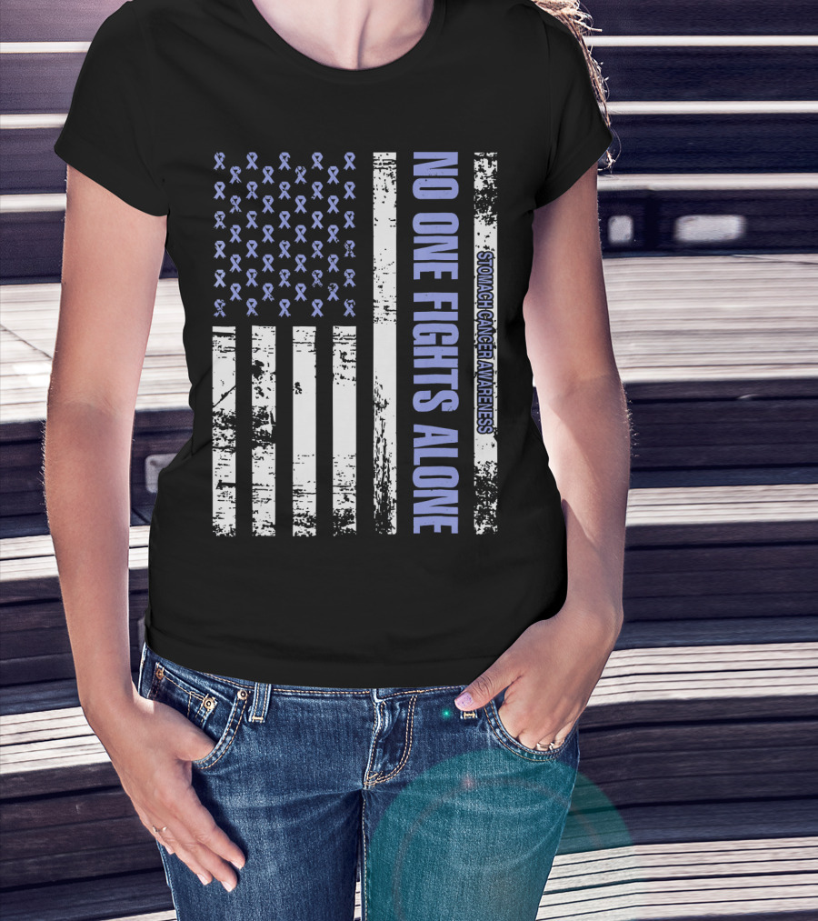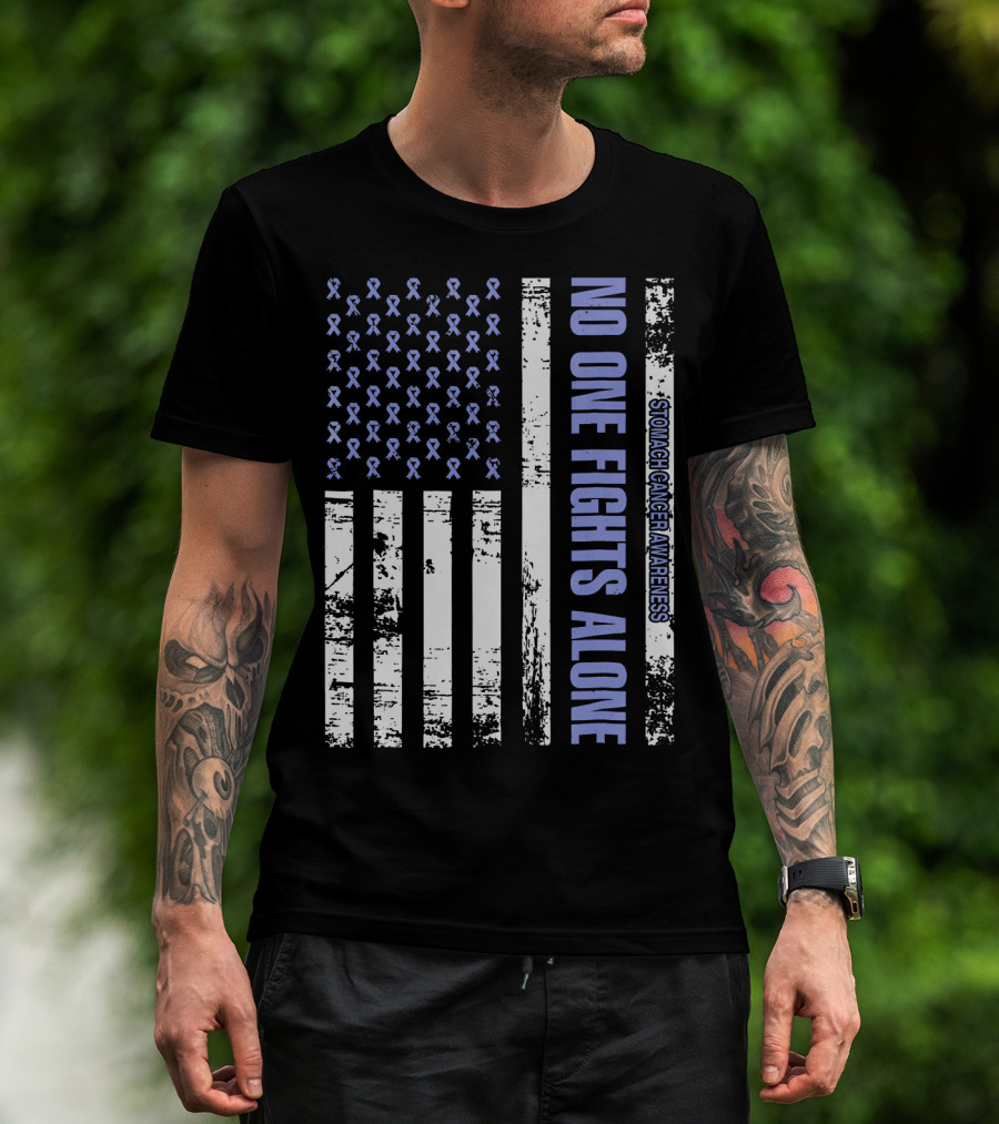 No One Fights Alone Stomach Cancer Awareness Flag With Ribbons T-Shirt