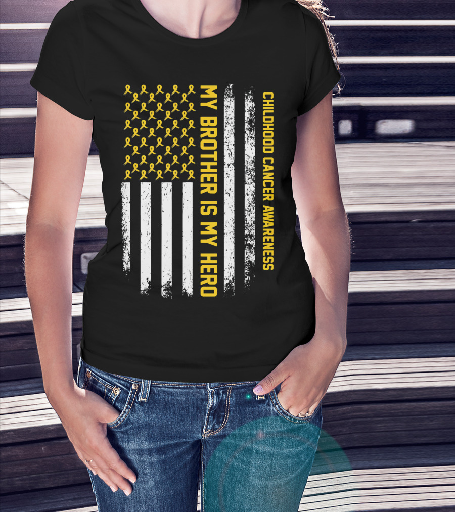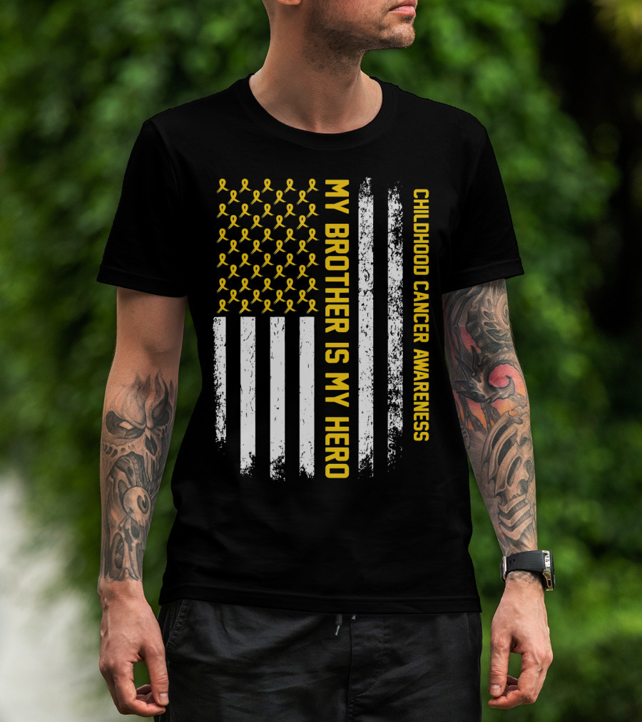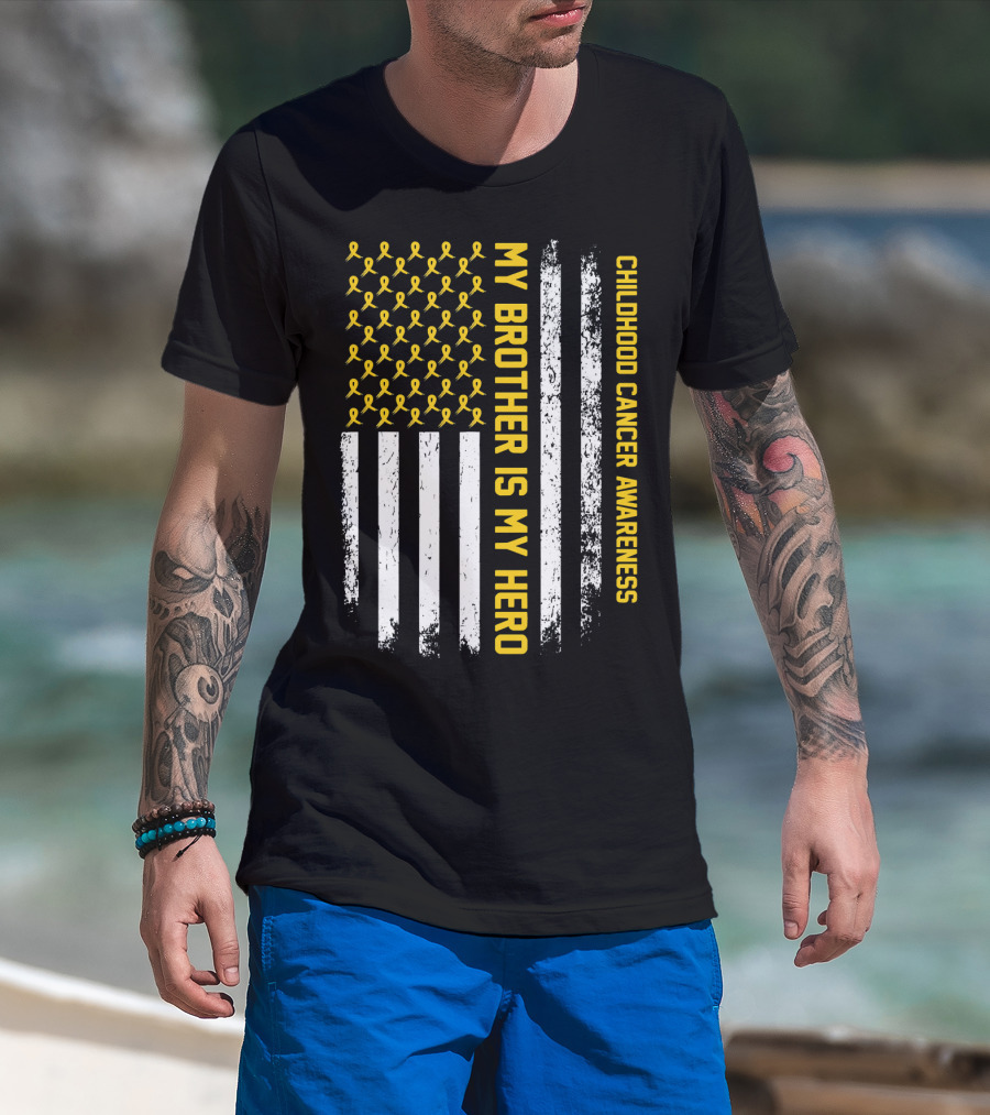 My Brother Is My Hero Childhood Cancer Awareness Ribbon Flag T-Shirt