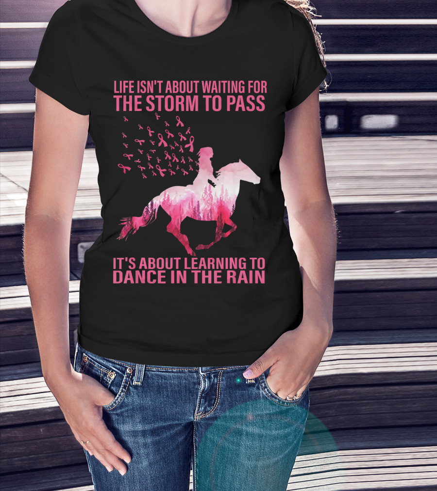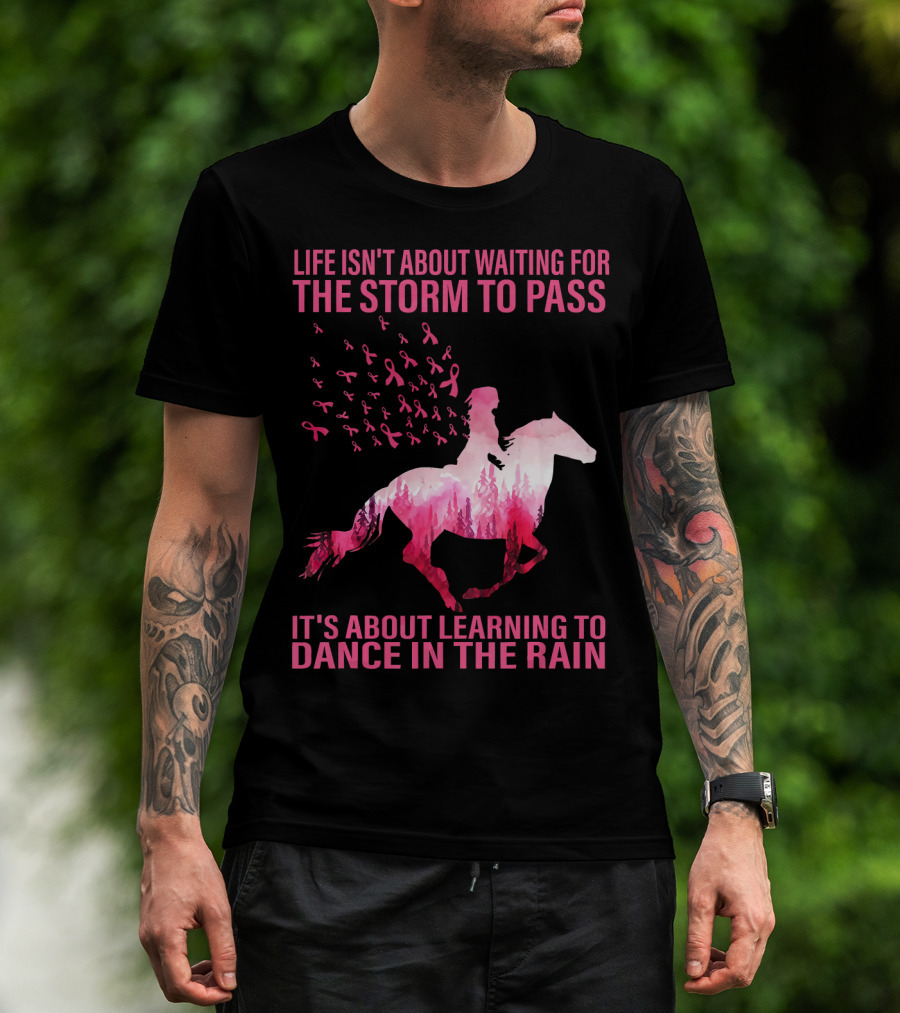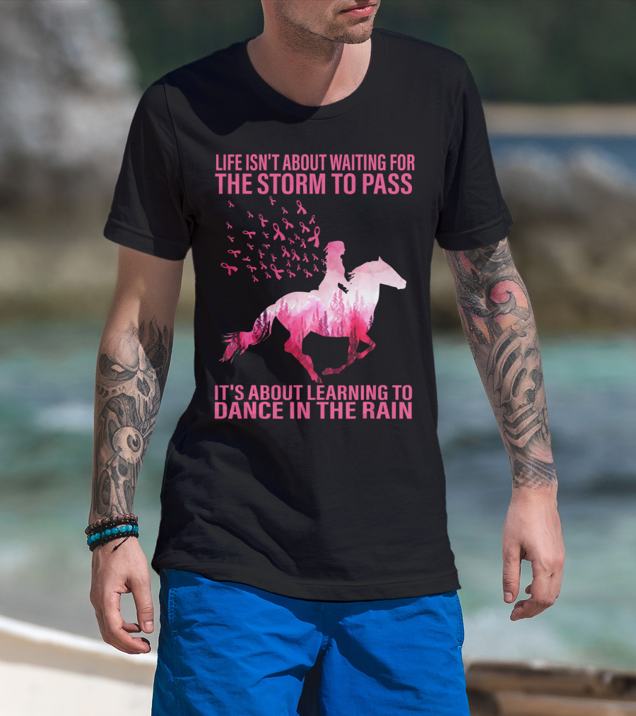 Life Isn't About Waiting For The Storm To Pass Breast Cancer Awareness Dance In The Rain T-Shirt