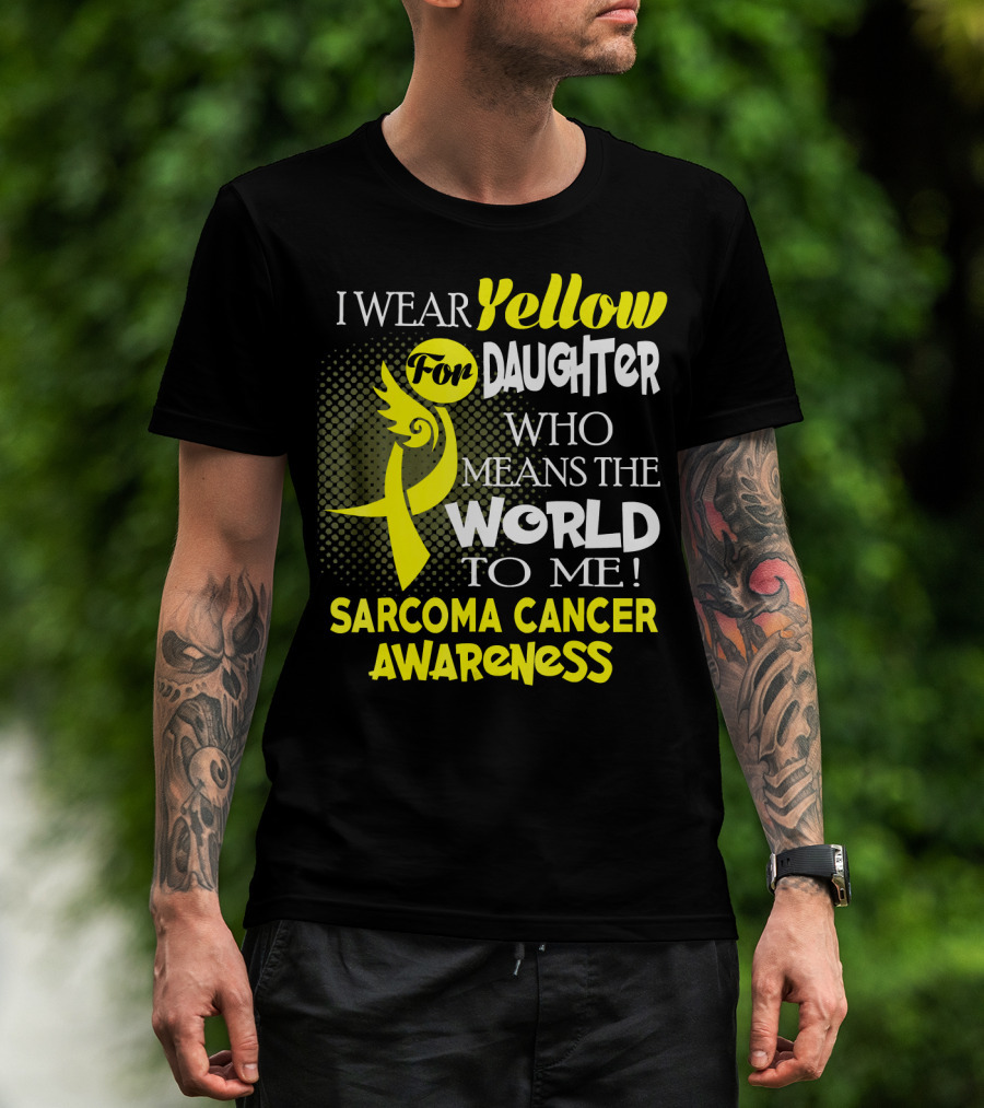 I Wear Yellow For Daughter Who Means The World To Me Sarcoma Cancer Awareness T-Shirt