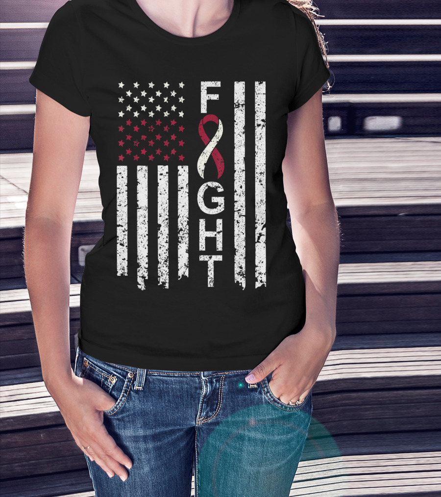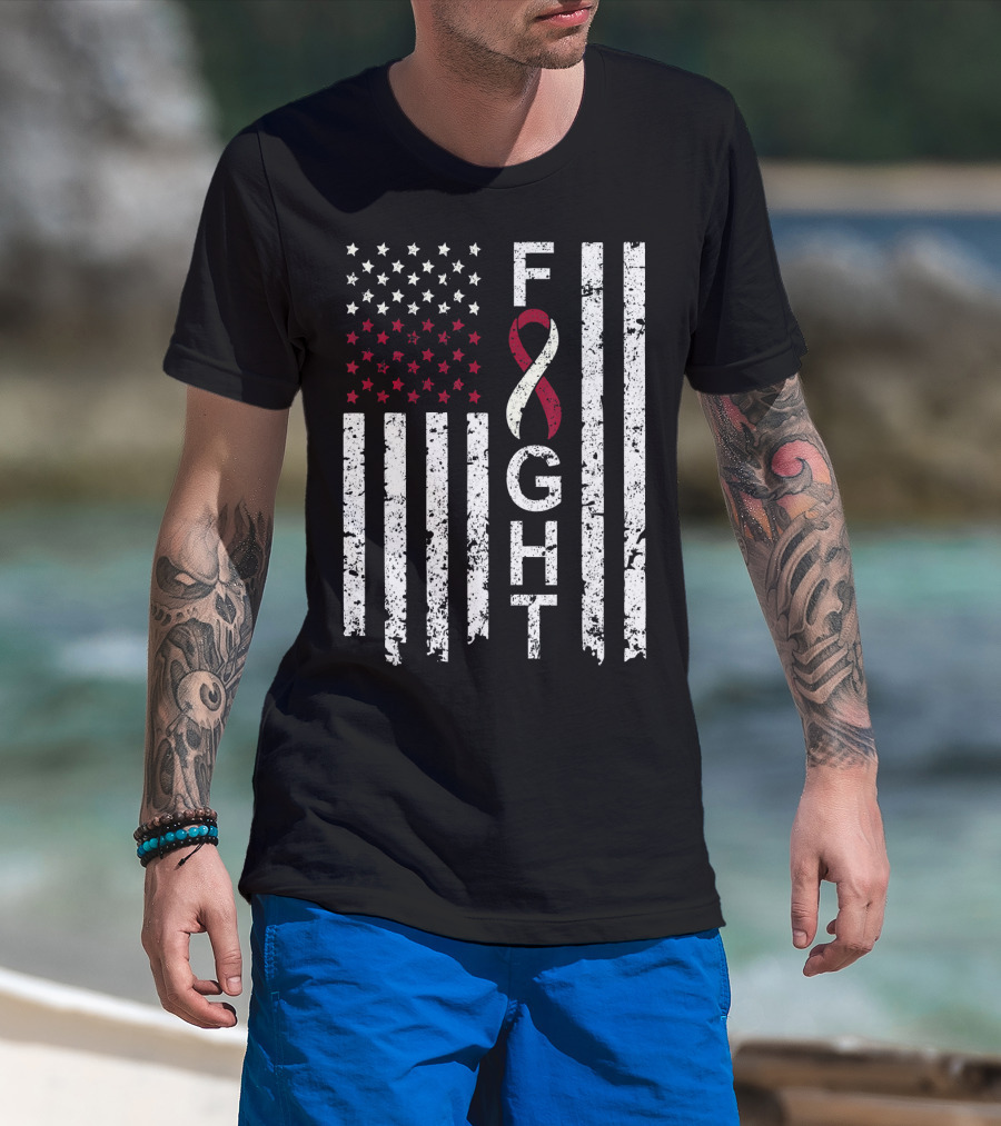 Head And Neck Cancer Awareness Fight Ribbon American Flag T-Shirt