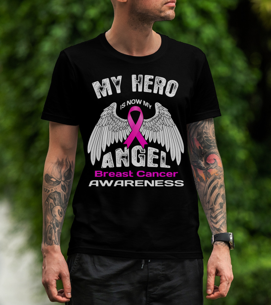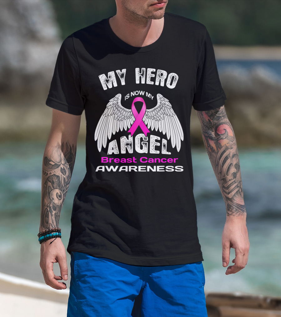 MY HERO IS NOW MY ANGEL Breast Cancer Awareness T-Shirt