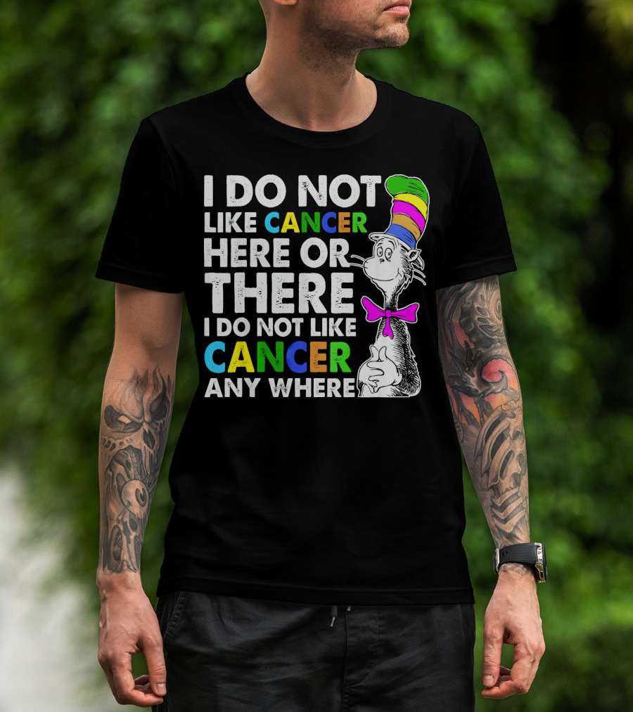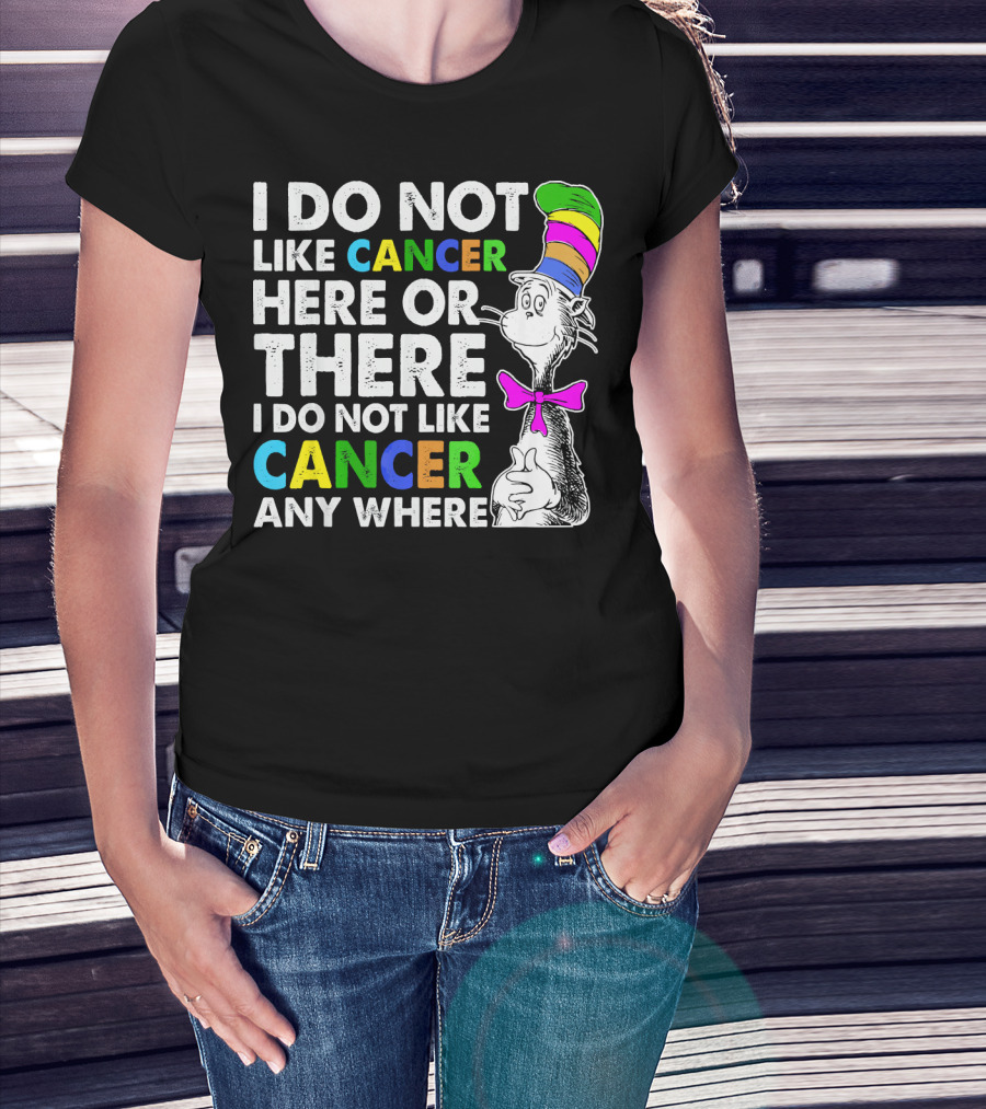 I Do Not Like Cancer Here Or There Anywhere Vintage Retro Cat Hat T-Shirt