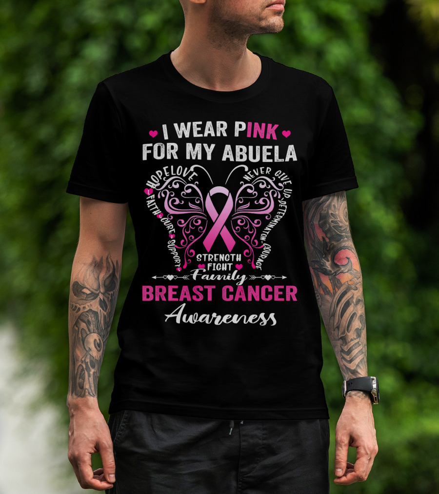 I Wear Pink For My Abuela Breast Cancer Awareness Hope Love Strength Fight Family Courage T-Shirt