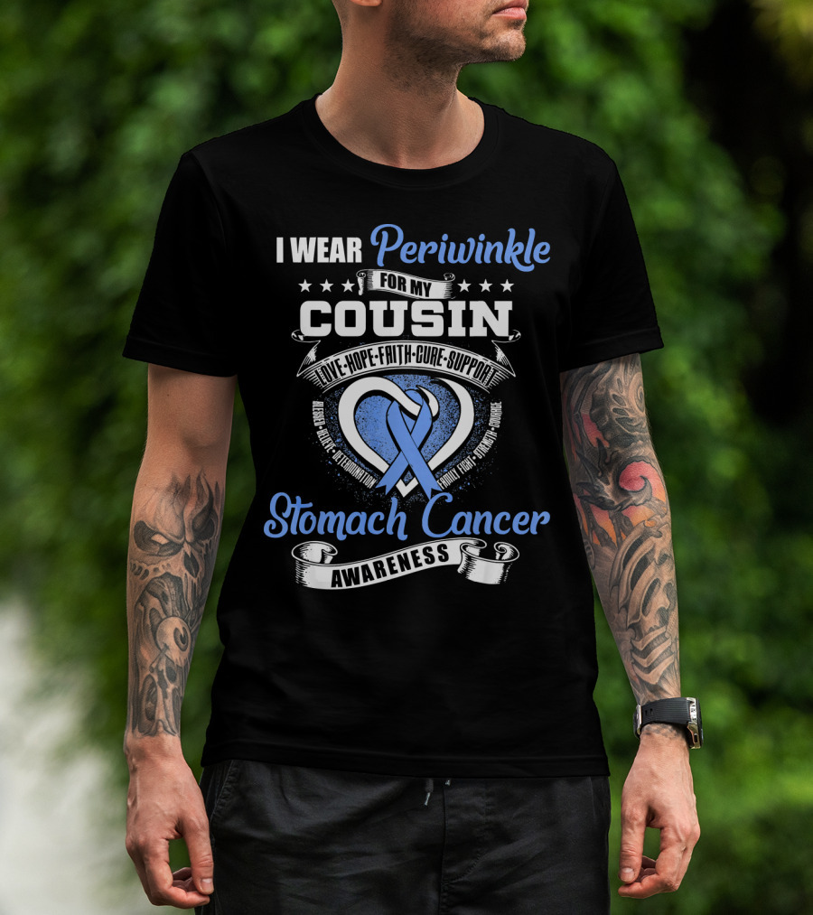 I Wear Periwinkle For My Cousin Stomach Cancer Awareness Love Hope Faith Cure Support T-Shirt