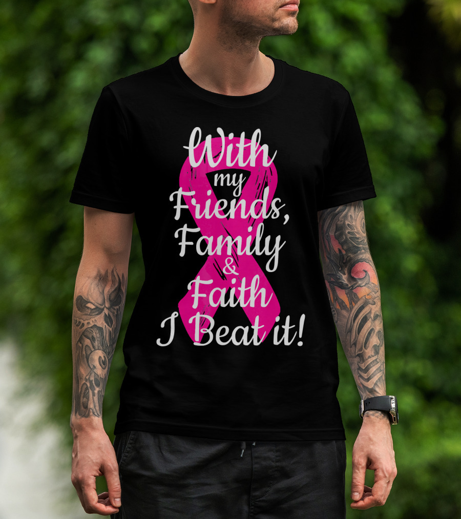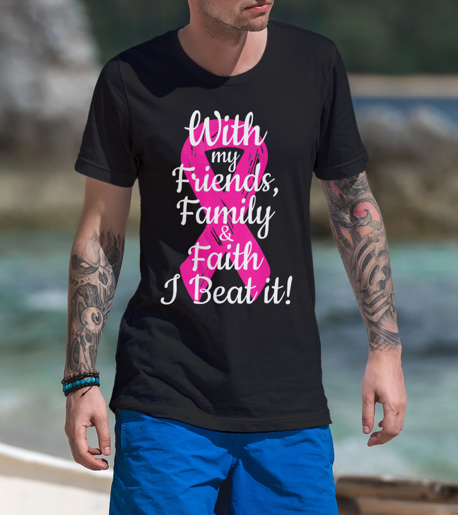 With My Friends Family Faith I Beat It Breast Cancer Survivor Family Novelty T-Shirt