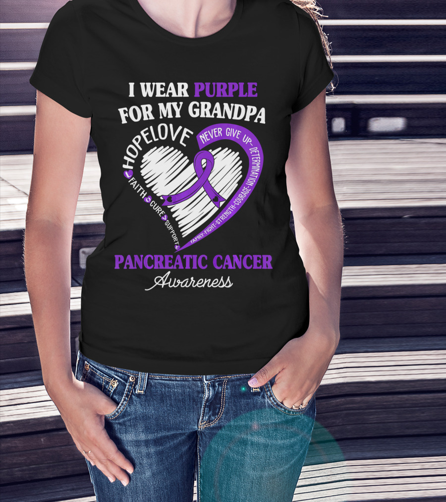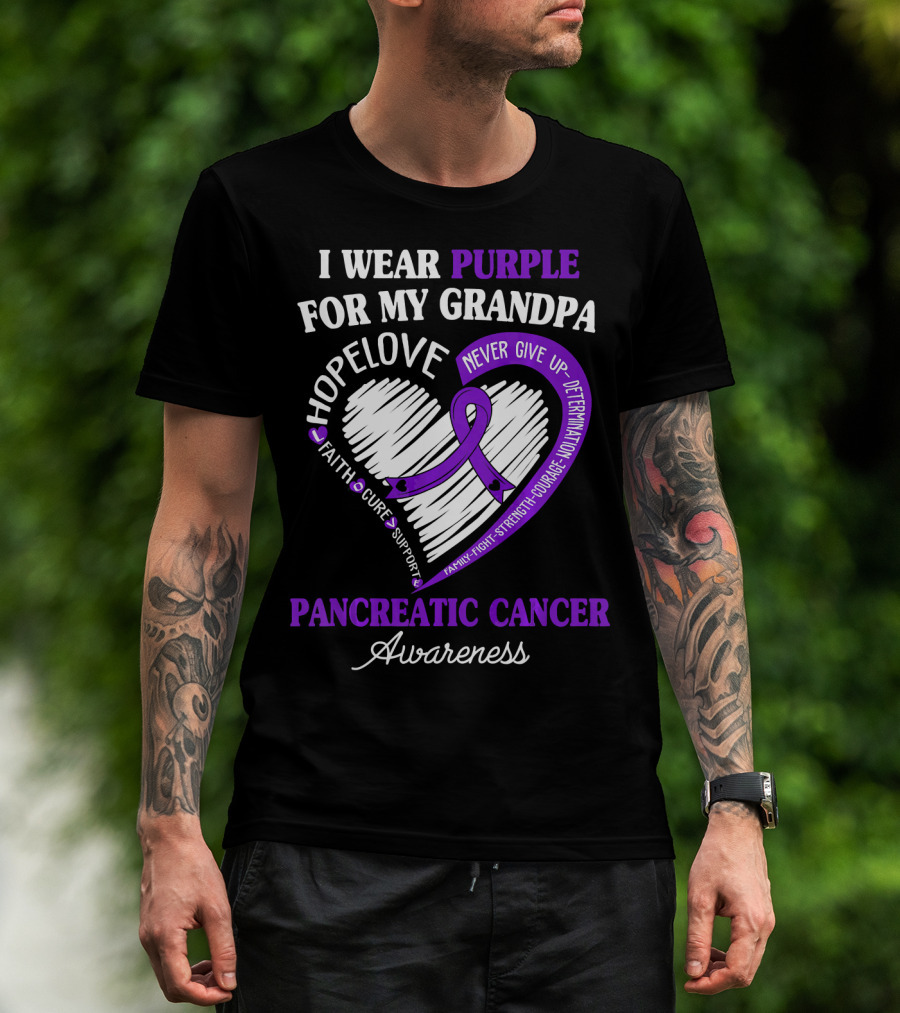 I Wear Purple For My Grandpa Pancreatic Cancer Awareness Hope Love Courage Strength T-Shirt