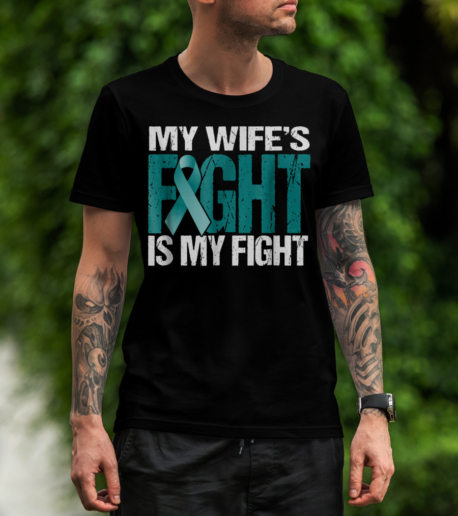 Mens Ovarian Cancer My Wife's Fight Is My Fight T-Shirt