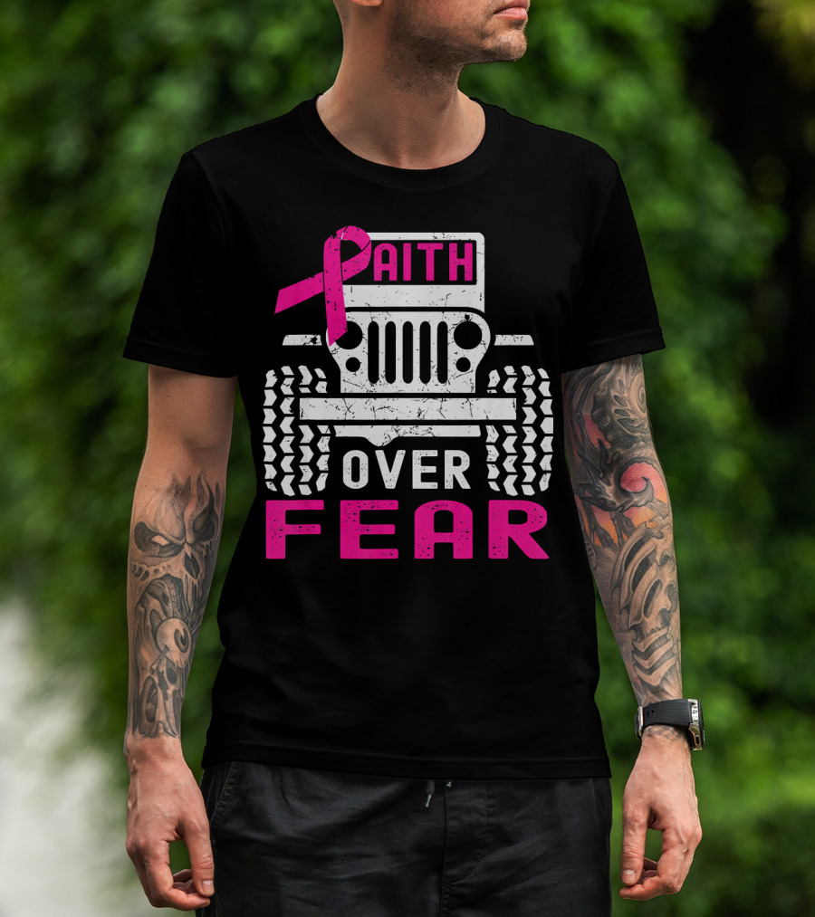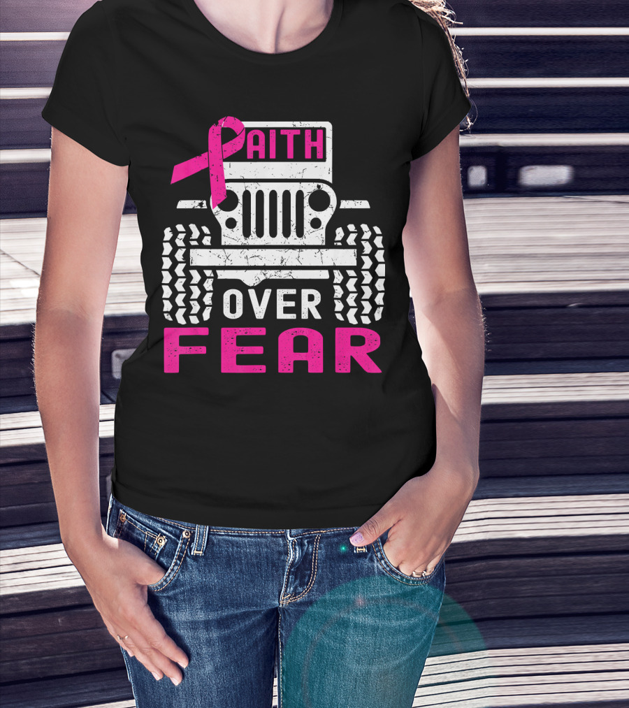 Faith Over Fear Jeep Breast Cancer Awareness T-Shirt