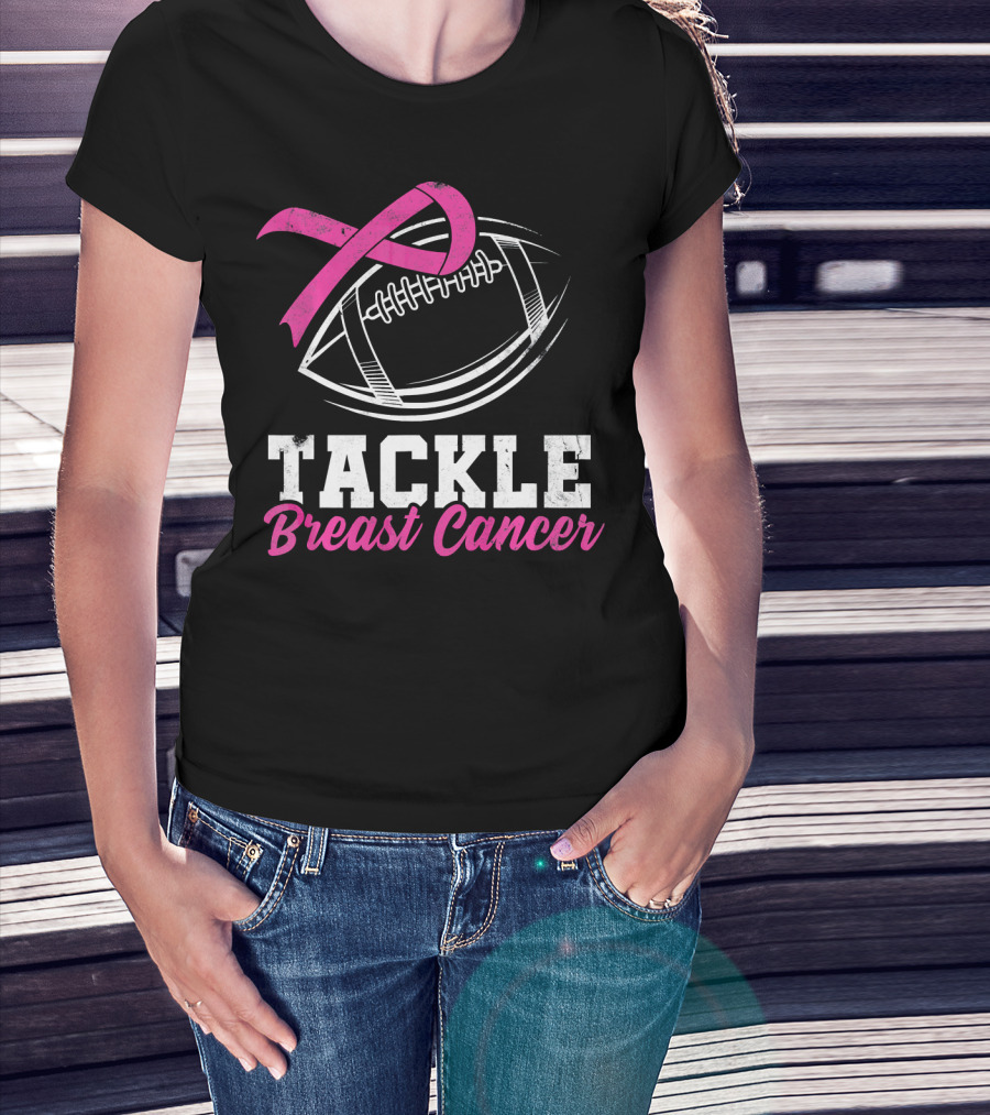 Tackle Breast Cancer Football Awareness Pink T-Shirt