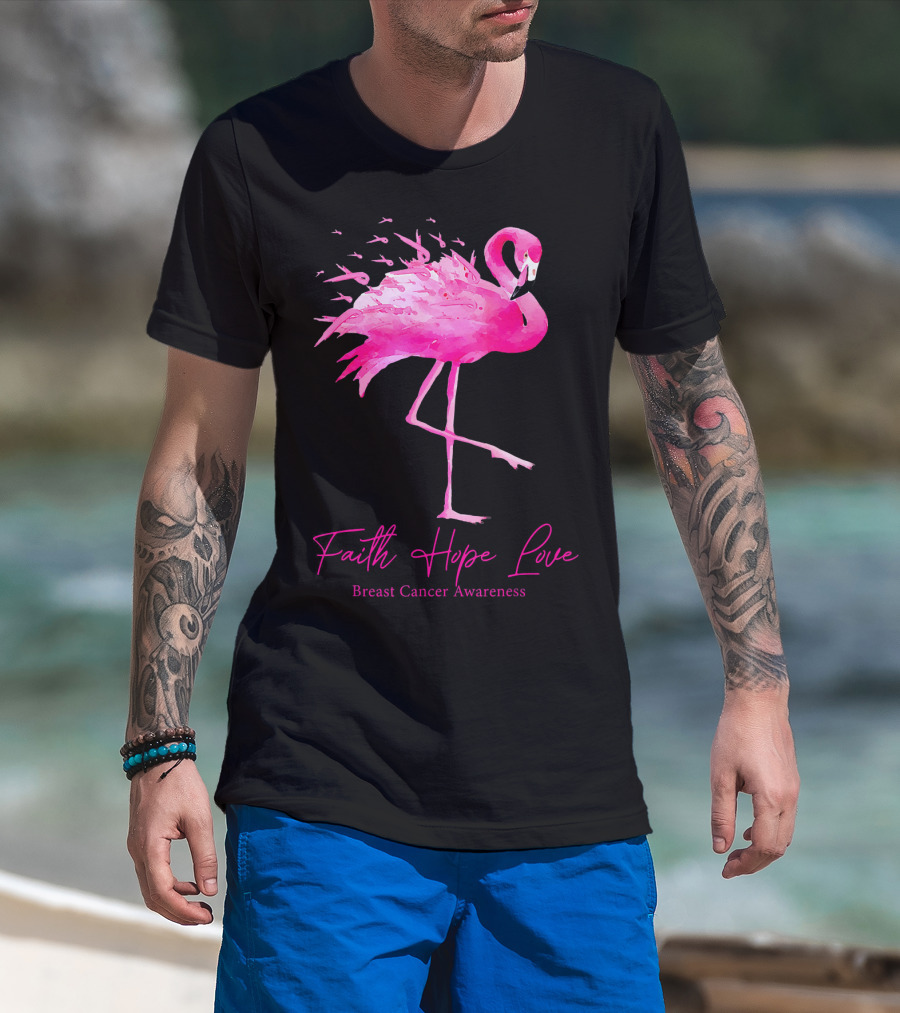 Faith Hope Love Flamingo Pink Breast Cancer Awareness T-Shirt