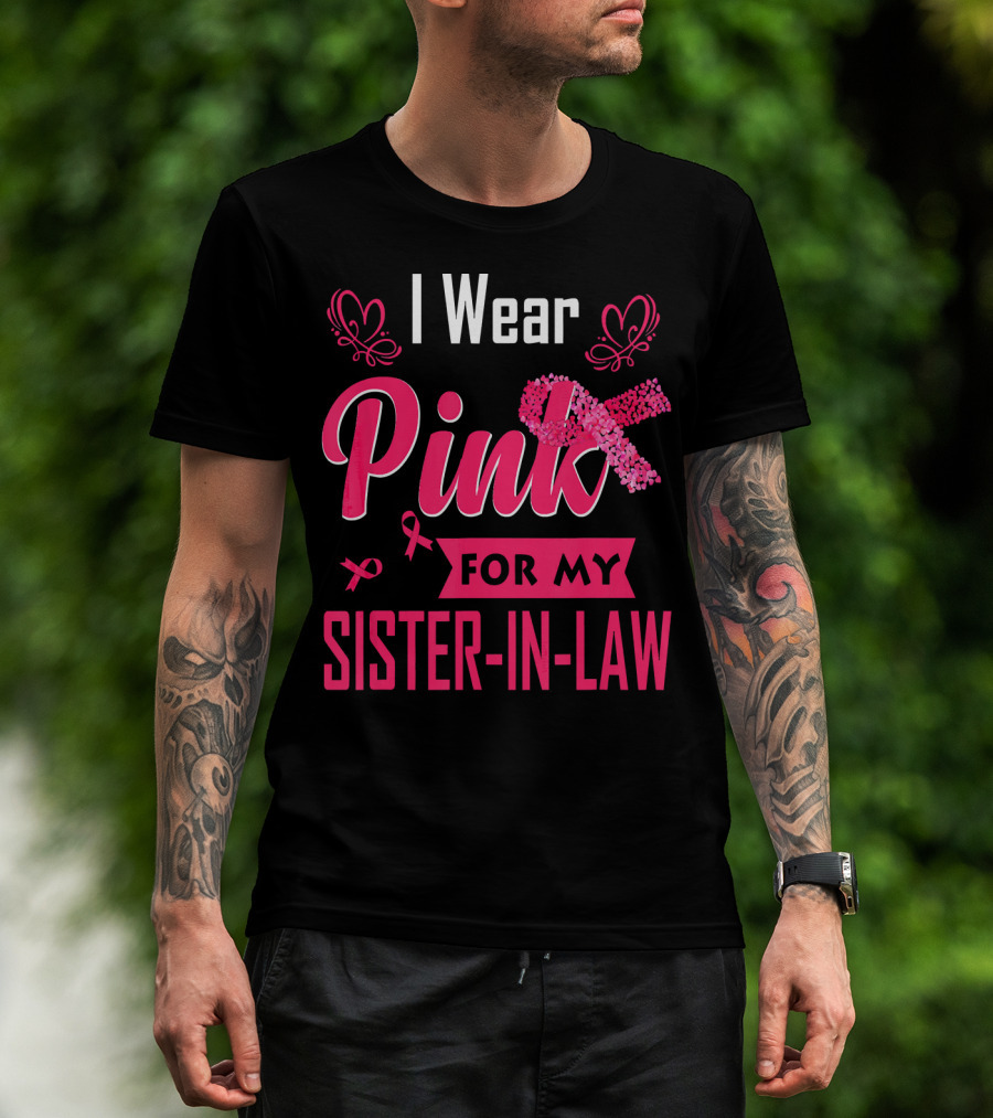 The I Wear Pink for My Sister-In-Law T-shirt is designed for everyday wear and a consistent fit. Fabric is pre-shrunk ring-spun cotton with durable stitching. See the size chart below for exact measurements.