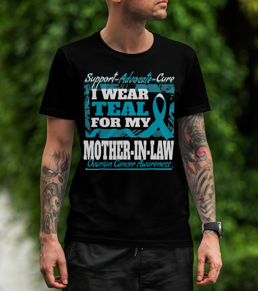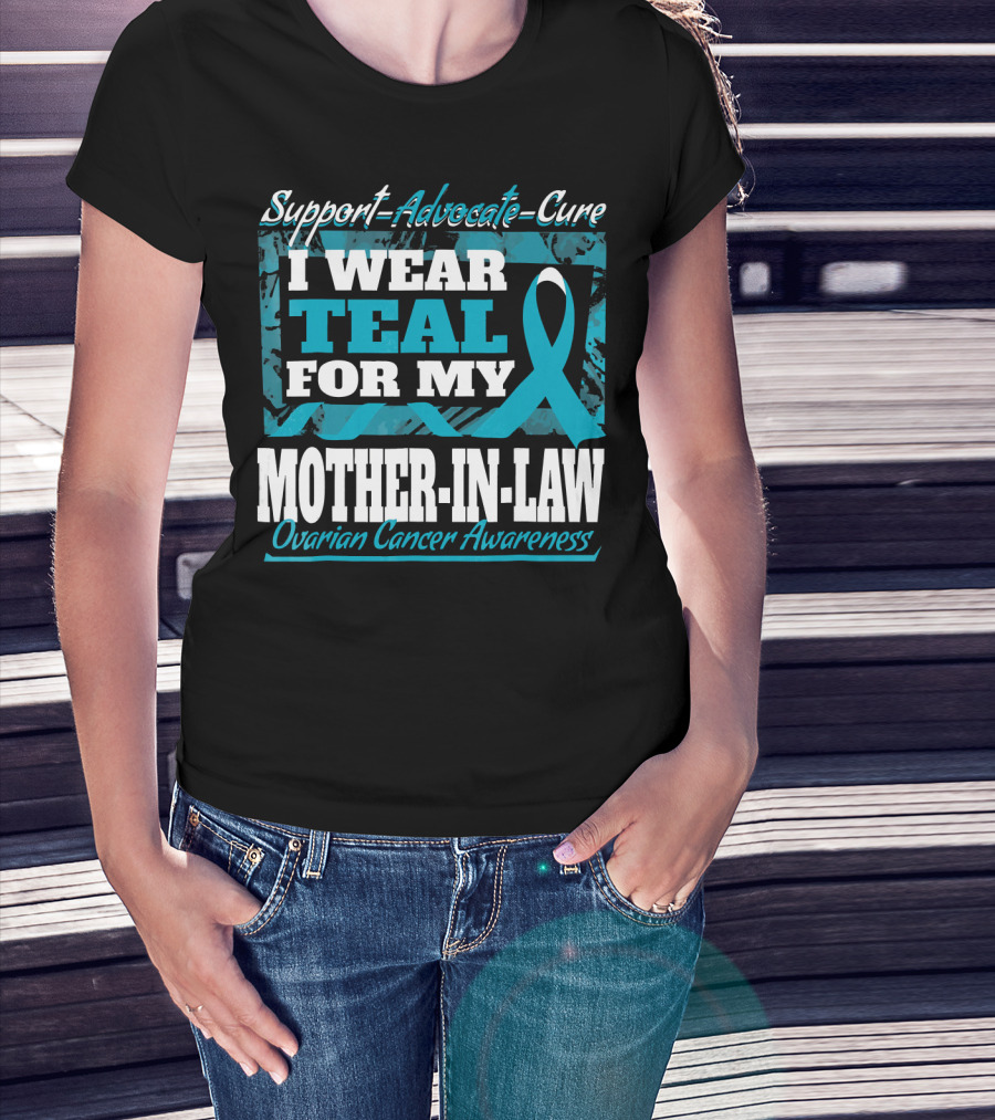 Support Advocate Cure I Wear Teal For My Mother-In-Law Ovarian Cancer Awareness T-Shirt