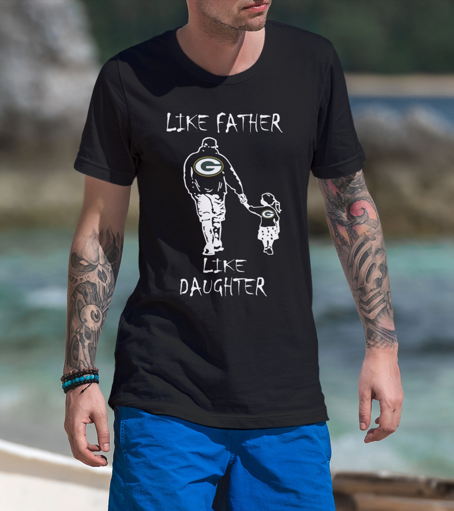 The Like Father Like Daughter Green Bay Packers Football Fans T-shirt is designed for everyday wear and a consistent fit. Fabric is pre-shrunk ring-spun cotton with durable stitching. See the size chart below for exact measurements.