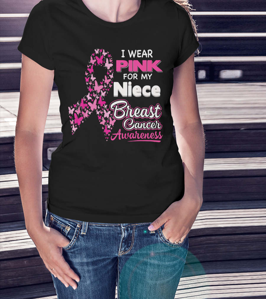 I Wear Pink For My Niece Breast Cancer Awareness Butterfly T-Shirt