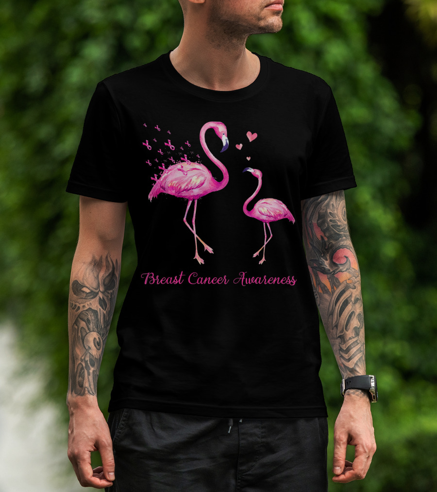 Breast Cancer Awareness Family Flamingo Mom Baby Hearts T-Shirt