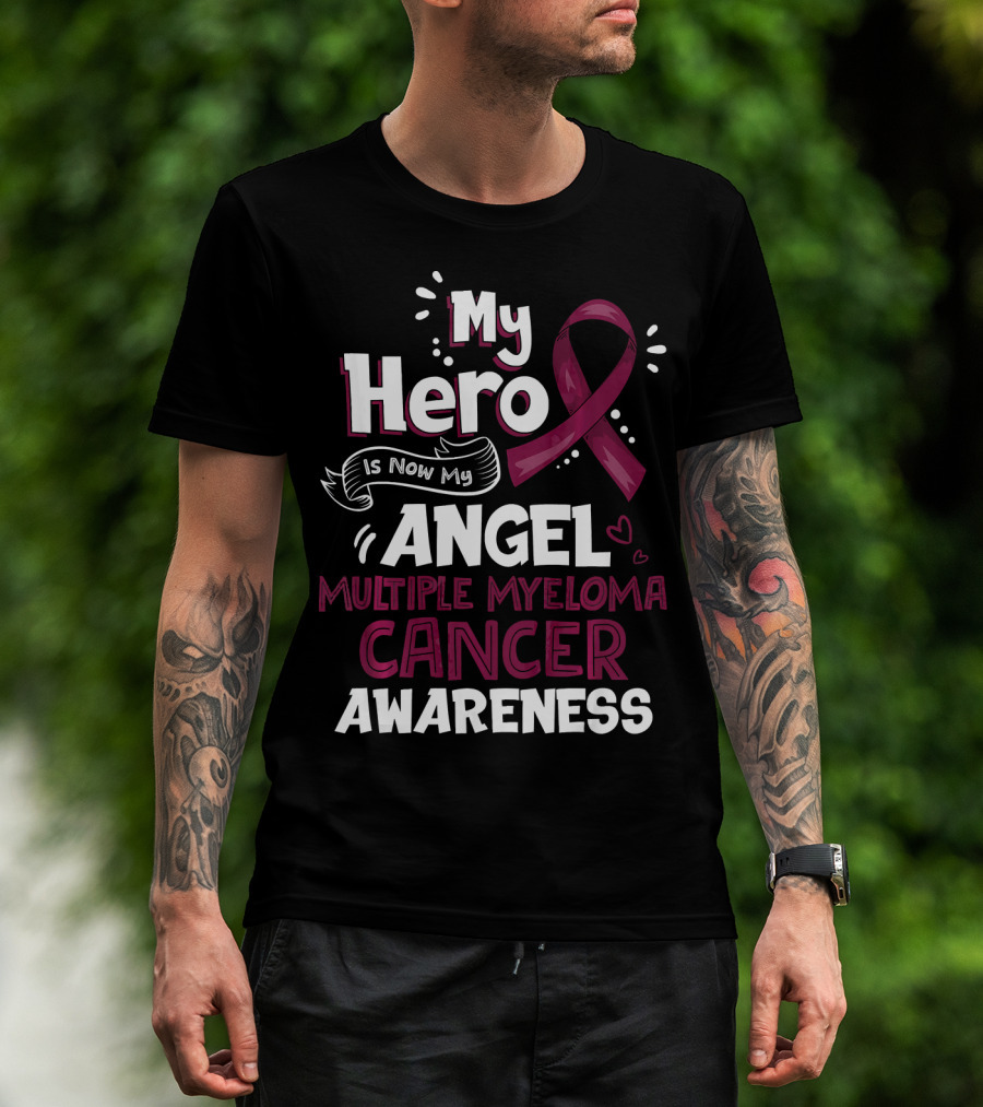 My Hero Is Now My Angel Multiple Myeloma Cancer Awareness T-Shirt